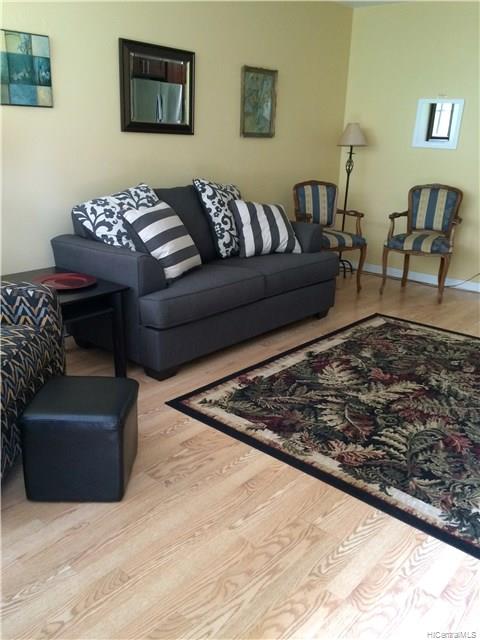 Remodeled kitchen, bath, and flooring in 2015. New vinyl shades for lanai 2016. Furnished in 2015. Well managed complex with lush garden like atmosphere, large salt water pool, bar-be-que area, large spacious areas. Building being painted presently. Unit must be owner occupied for one year before it can be rent. Lease rent steps up every five years at approx. 3% per year, starting in 2018. Lease negotiated till lease expires in 2048.