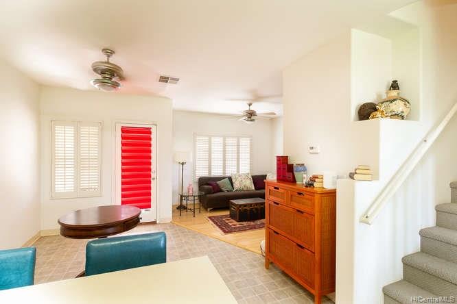 Fantastic 2 bedroom 2.5 bathroom , One Bedroom is HUGE!! 2 story Unit in Excellent condition! Seller is Original Owner, Nice floor plan with small private enclosed back yard that leads to enclosed 2 car garage. Plantation shutters, on all windows, Brand new carpet on stairs and upstairs.. Open your front door and walk out to grassy area with lots of Shady BIG Trees or enjoy enclosed Tot Park within walking distance.This Town home is close to schools, shopping, Fire Dept and many bike and walking paths! Come and see your future home! First Open House This Sunday 6/3/18