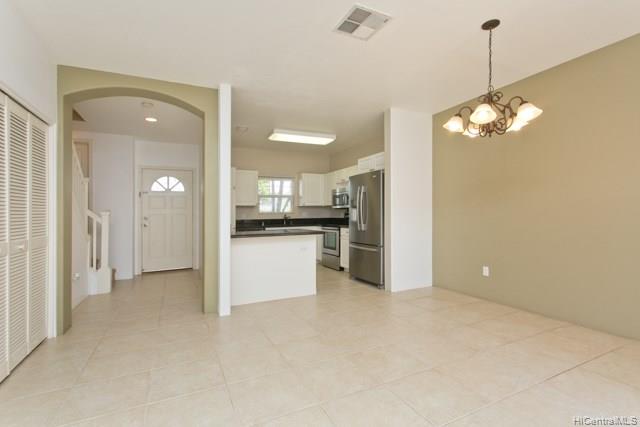 HUGE PRICE REDUCTION! Beautiful three bedroom, two and a half bath, split-level townhome in Ke Noho Kai in Ocean Pointe. Central air conditioning. Spacious, open kitchen with stainless steel appliances and granite countertops. Private enclosed backyard between home and enclosed two-car garage with covered lanai in front and back of home. Lots of guest parking nearby. Minutes to restaurants, shopping, bus lines, schools, parks and Ka Makana Ali’i shopping mall. Low maintenance fee includes sewer, water and common area maintenance. Pet friendly community.