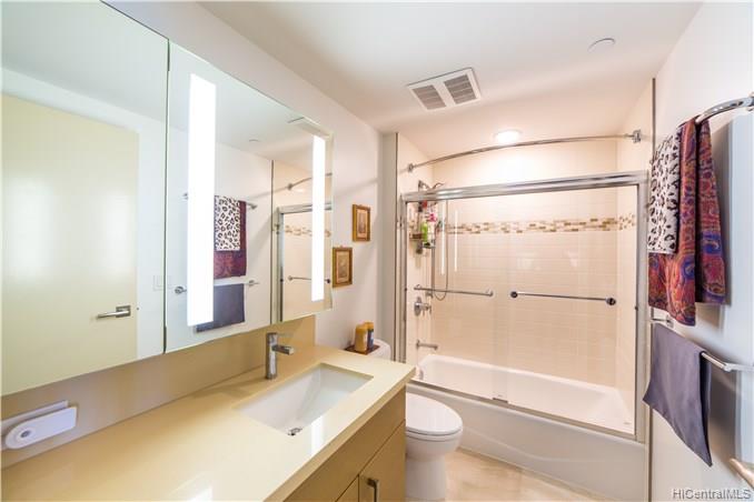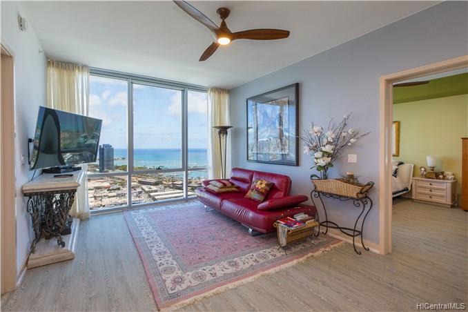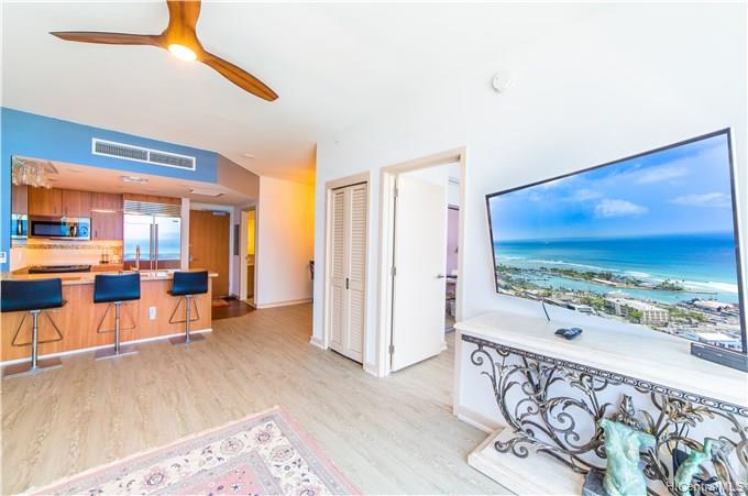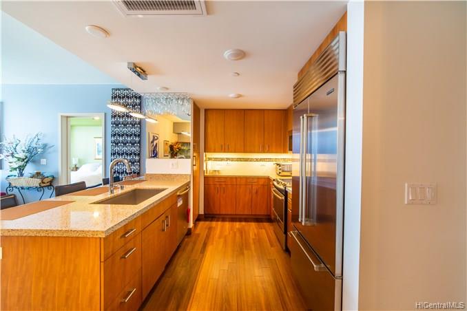 Rarely available Penthouse Level unit with 2/2/2, 9’2″ high Ceiling on the 42nd floor. Breathtaking Diamond head and Ocean View. Best location unit in the Keauhou Place, a New Project that just finished on Nov.16, 2017! Sub-zero refrigerator, new top line wooden floors, Split A/C with compressor in the rooftop. Everything is brand new. Many new luxurious amenities such as salt water heated pool, whirlpool, gas BBQ ranges, children’s playground, meeting room, exercise room and etc. Pet Friendly-Two pets up to 50 lbs. 24 hour security w/ security key entry & patrol. Resident Manager. The location is also in the desired, redesigned Kakaako Ward Village, close to Ala Moana and so many famous shops/restaurants.