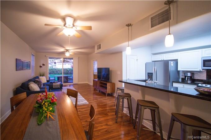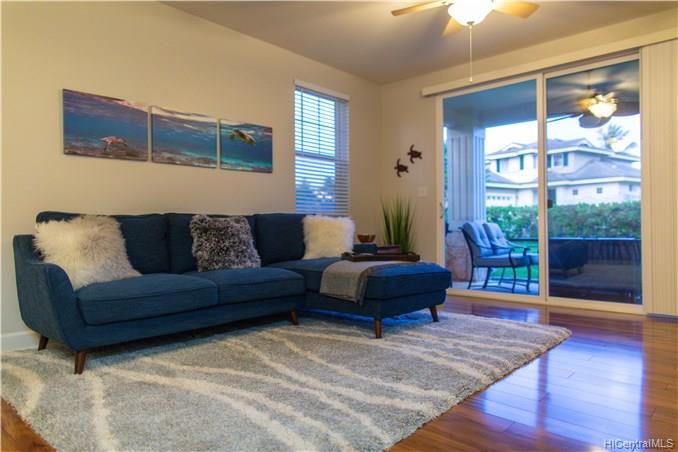 Newly remodeled Beach Modern design, Premium Location, with upgraded granite tops in kitchen and baths, super clean, turn key investment property, great cash flow. New furniture, new paint, new window treatments, new stainless steel applicances, One of the nicest homes in Ko Olina, great location in Gated community, Gorgeous Ko Olina the place of joy, this building is right across the street from the path to Roy’s and the Golf Club House, ease access to tennis courts and fitness center. Close to shopping, dining, beaches, lagoons and marina. Very central location easy access to all the amenities of Ko Olina. Great home in the best location in the community, close to everything. Downstairs, single level home with one car garage and one more parking for two car parking. Gorgeous resort pool