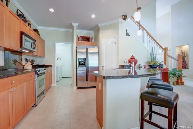 LIVE THE DREAM! Call Ko Olina Kai home and you will discover a love for the Islands that is woven into every aspect of this exclusive gated community. As you enter this beautiful Golf Estate you will feel your cares melting away. Whip together a gourmet meal in your stylish kitchen or barbecue steaks on the large lanai as little ones play freely in your spacious backyard. Located on the 14th Fairway of the KO Olina Golf course (home of the LPGA). 4 bedrooms, master bedroom is located on the first floor, 3 bath, attached 2 car garage + driveway parking. KO Olina PURE PARADISE for a day, a week, a lifetime…
