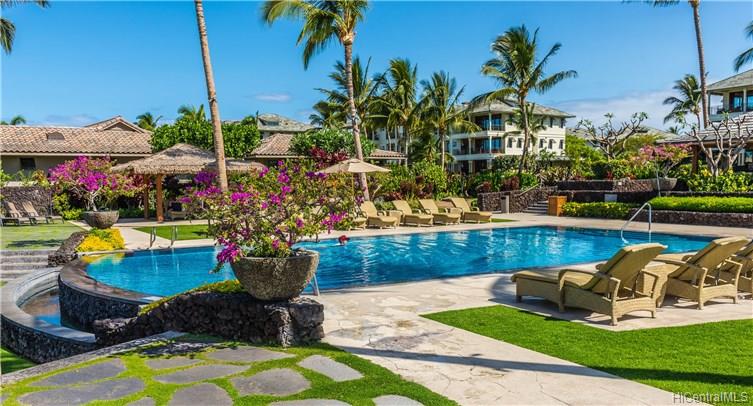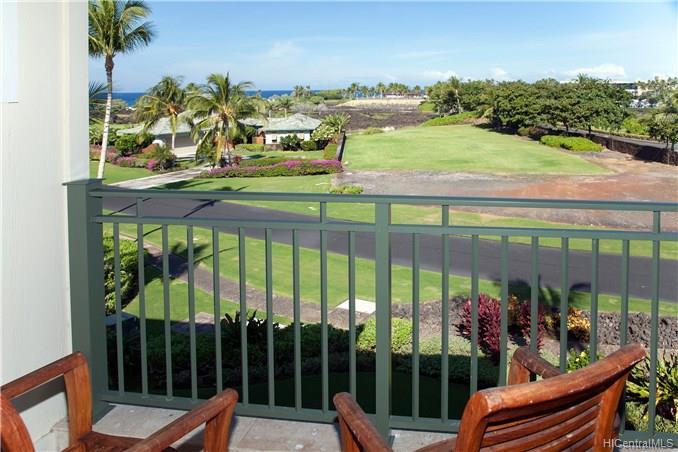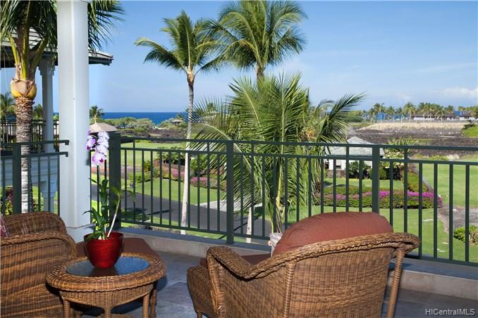Kolea: the only beachfront condominium community on the Kohala Coast! This sunset and ocean view penthouse three-bedroom villa is a popular vacation rental. Guests appreciate that it feels like a real home. Owners and guests slide back the pocket doors for real Hawaiian style indoor-outdoor living, enjoying the ocean view from the expansive balcony. Cook outdoors on the teak “summer kitchen” with built in BBQ, or make more elaborate meals in the spacious kitchen with top-of-the-line appliances, African mahogany cabinets, and granite counters. This condo has upgraded travertine floors throughout the great room and three beautifully appointed full baths plus powder room. Furnishings are available under separate bill of sale so you can just bring your swimsuit and toothbrush!