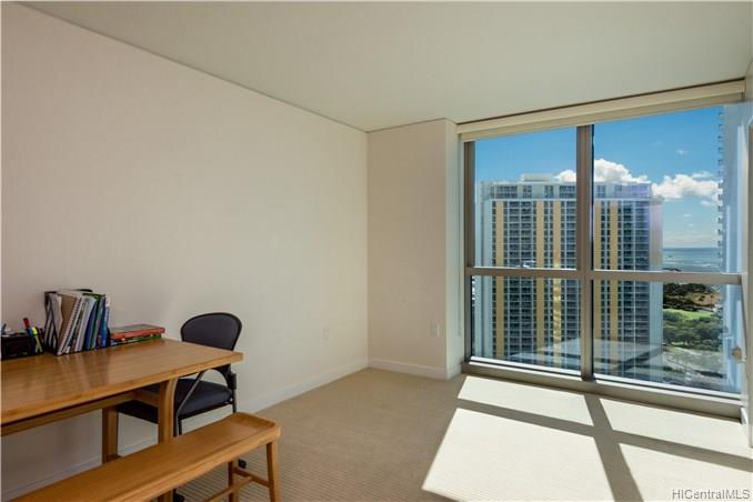 Greatest value in Kaka’ako, best 2 two bedroom floor plan “08” stack in Koolani. Walk into a spacious and beautiful living room and kitchen. This unit commands big ocean views and views of an exciting Kaka’ako neighborhood. Upscale Viking appliances, granite countertops, and spacious square footage 1518 sf! Stroll to everything; WholeFoods, Foodland Farms, Ala Moana Shopping Center, Ala Moana Beach and Park, Ward movie theaters, shops and tons of restaurants. All just a few minutes stroll. Koolani has amenities galore and its secured.