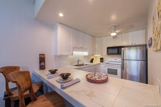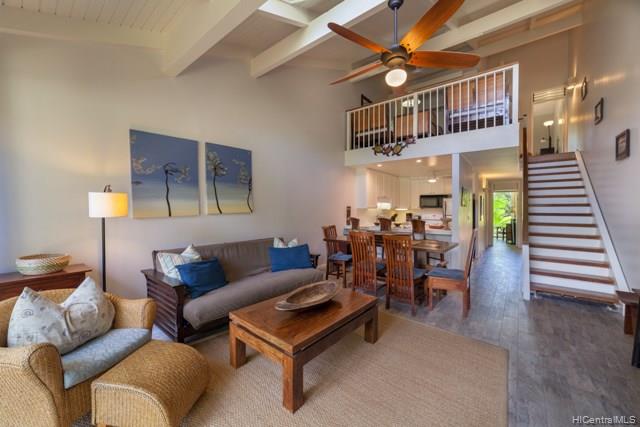 Spacious and rarely available 2 bedroom + Loft, 2 bath home ready to enjoy! Remodeled bathrooms, new flooring and other upgrades. Well maintained and fully furnished home in this sought after gated community. Popular vacation rental so showings are subject to availability. A short walk to beaches, Turtle Bay resort, restaurants and golf! World class surfing, Haleiwa town and North Shore attractions a few minutes away. Community pool, BBQ, Tennis Court and guest parking. Don’t miss this opportunity to own one of the very few 2 bedroom units at Kuilima!