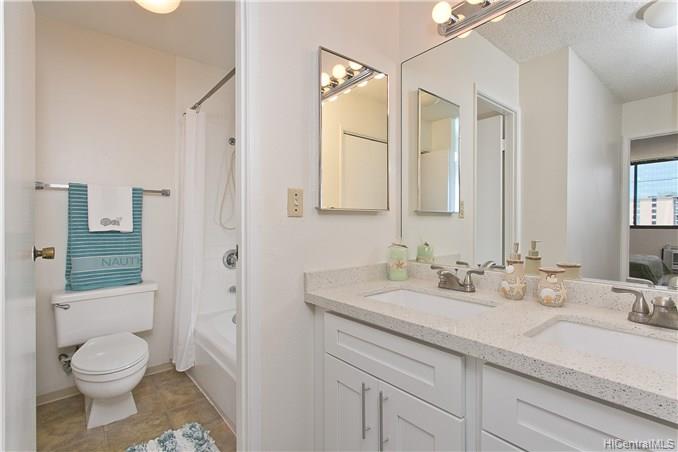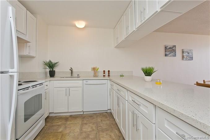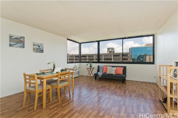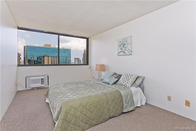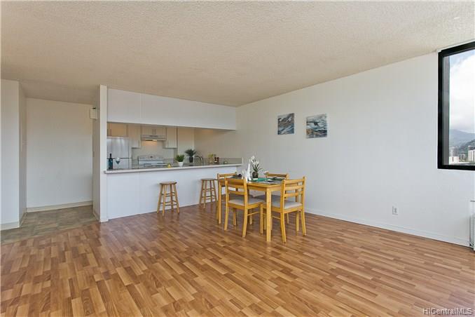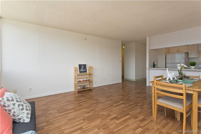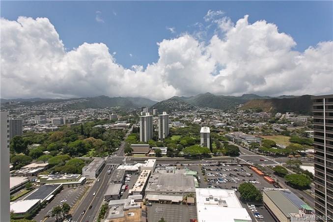 Must see this rarely available bright and breezy 31st floor corner unit with beautiful city and Mountain Views! Unit is recently renovated with new granite countertops and cabinets in the kitchen and bathroom. Unit includes side-by-side washer and dryer. Super convenient location – walking distance to downtown, Chinatown, bus lines, restaurants, Long’s Drugs, Safeway and Hawaii Pacific University. Building has wonderful amenities that include BBQ areas, pool, private garden with walking and jogging path and much more! Fee simple no sandwich lease.