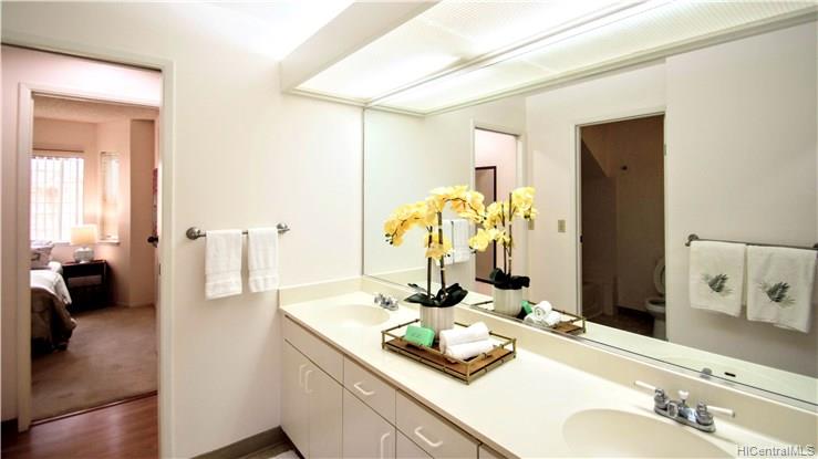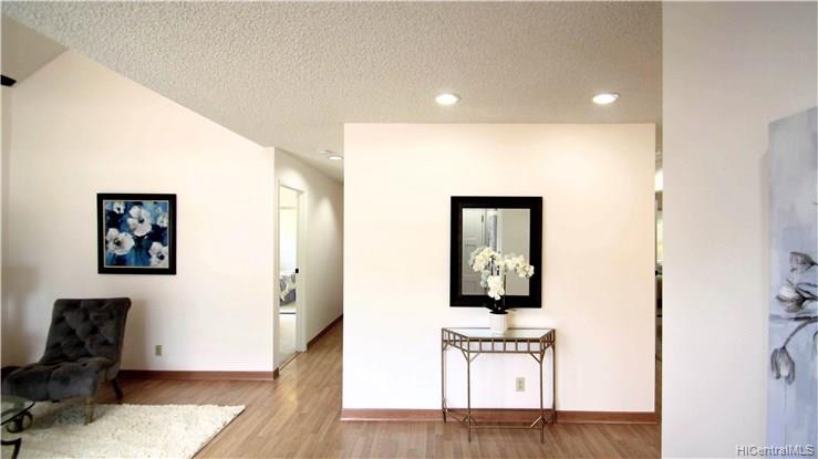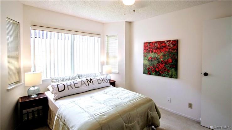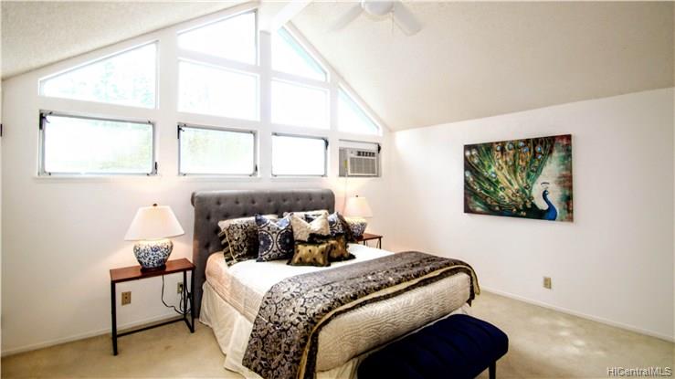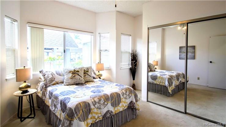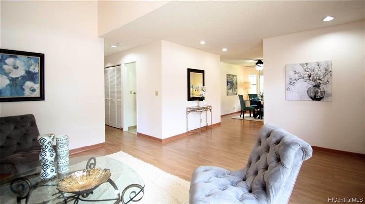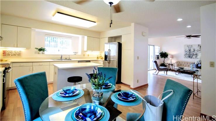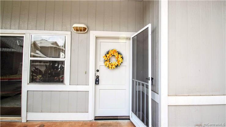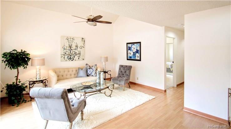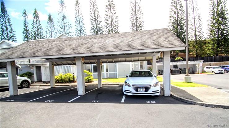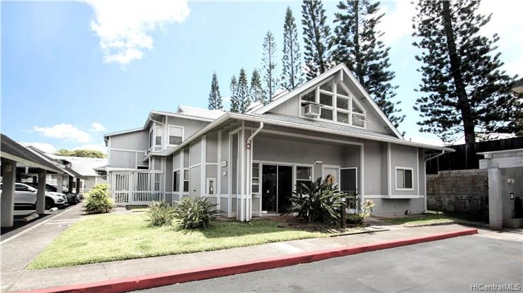 Bact on the market. Must See! Fresh Repainted… Close to freeway entrance, shopping & schools. It is in Mililani Mauka Elementary School District! Kumelewai Court, it is ideally located near the entrance of Mililani Mauka avoiding the morning rush hour getting out. Well maintained, two stories townhouse, end unit with large master bedroom on the 2nd level. 1, 635 square foot living area has the feel of a single family residence. Upgrades include wood laminate flooring. Features include A/C’s, ceiling fans and 2 large storage closets. Two side-by-side covered park stalls in front of the unit.