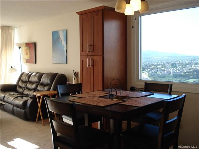 31st floor, VIEWS of Ocean, Mountains, Golf Course all the way from Pearl Harbor to Waianae. This unit has 2 covered PARKING STALLS located close to the elevator and a storage locker. It is a Corner/End unit with extra windows for more VIEWS. It comes with a beautiful, newly renovated kitchen with new stainless steel appliances and new floors in the kitchen and entry way. Lele Pono is conveniently located across the street from the Pearlridge Center and very close to Pearl Harbor, Hickam AFB, and the Airport. A large lanai extends from the living room to the bedroom for VIEWS and outdoor living space. Lele Pono comes with lots of secure guest parking and security. Hot water is included in the maintenance fee.