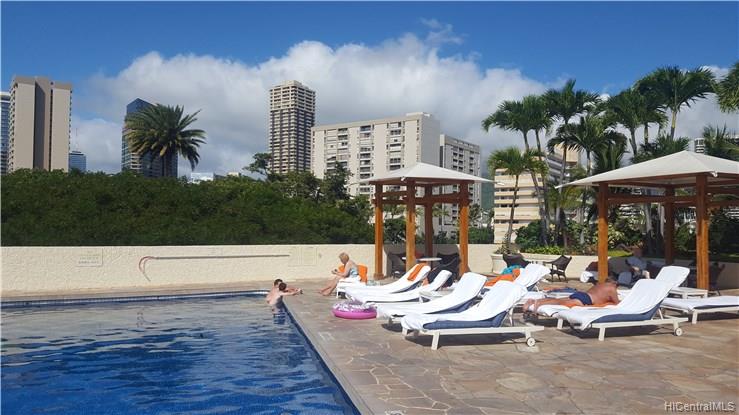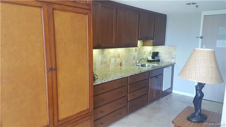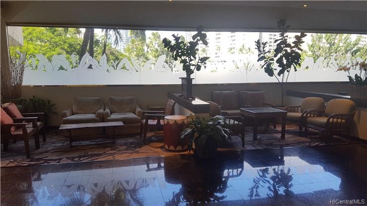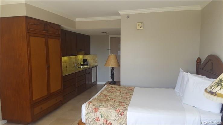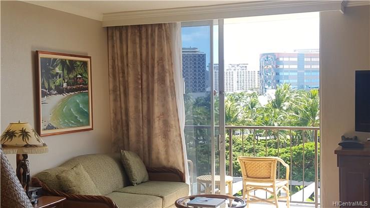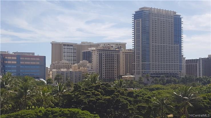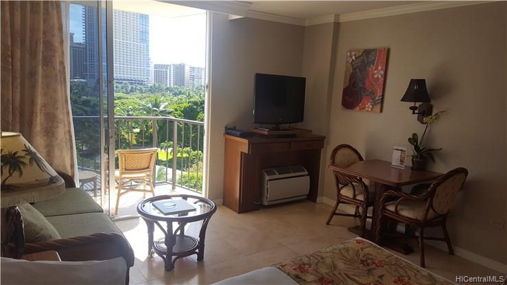 BEST Located Studio Unit at Luana Waikiki! #409 is Located at the South West Corner of the Bldg – Furthest from Kalakaua Ave Noise – Overlooking Park Like Grounds & Tree Canopies of Neighboring Ft DeRussy – to the Ocean! Peaceful QUIET Setting! Unit is Managed by Aqua Aston Hotels! Boutique Condo Hotel with Beautiful Sophisticated Hotel Lobby and Pool Area! Great Location Near the Heart of Waikiki and an EZ Walk to Waikiki Beach! A Perfect Vacation Spot with Rental Opportunity. Fully Furnished and Including Ample Living/Dining/Wetbar Area with Refrigerator & Granite Countertops! Lovely Lanai to Enjoy Tropical Evenings! Don’t Miss Out on This Opportunity to Own a Piece of Paradise in World Famous Waikiki!