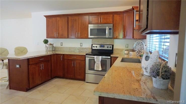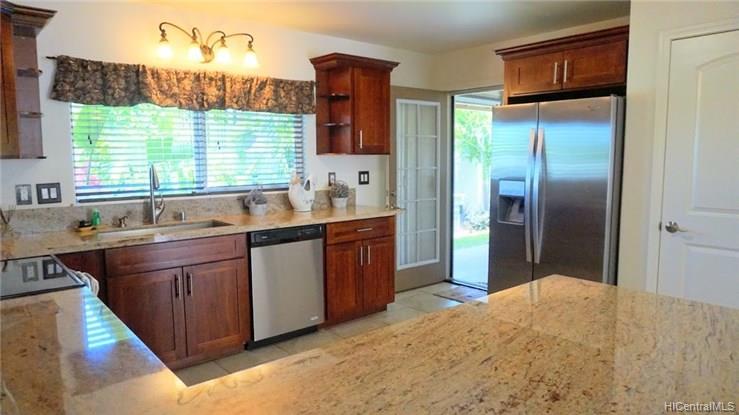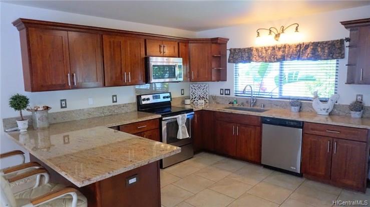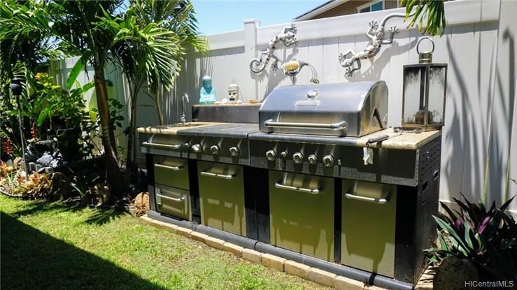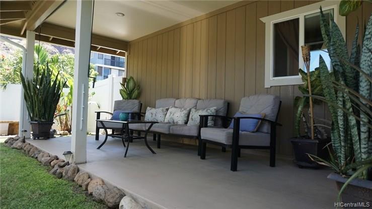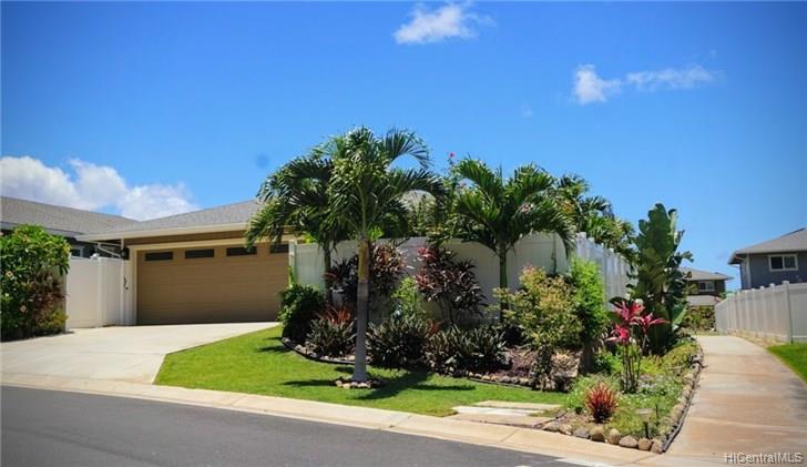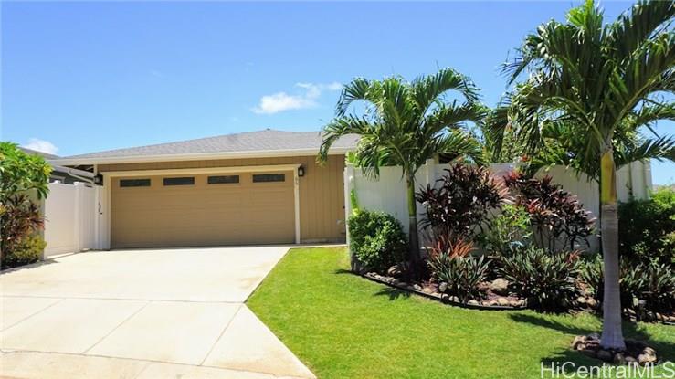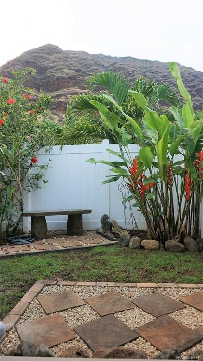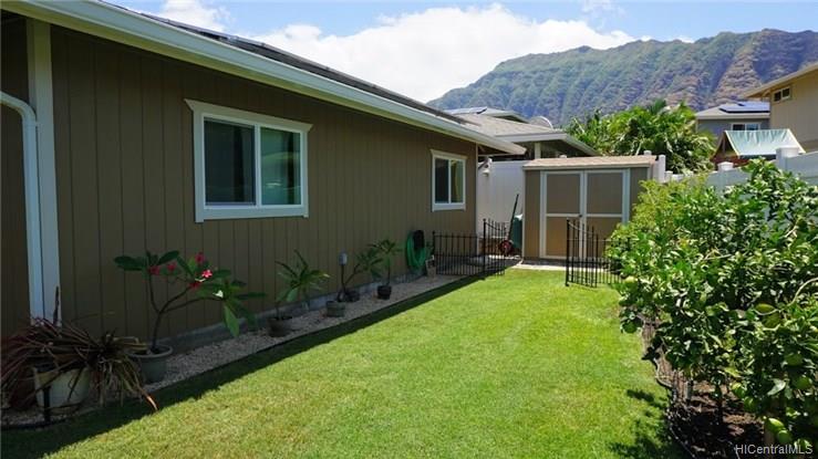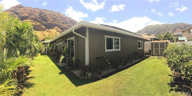 Come let the ocean breeze, warm sun, and tropical backyard oasis welcome you home. This single story 3 bed, 2 1/2 bath ranch style home is located in the GATED community of Makaha Oceanview Estates. The home neighbors a beautiful & serene walking path, so you only have 2 neighbors! Enjoy stainless appliances,granite throughout,split ac in bedrooms,BRAND NEW CARPET, epoxy floor & private bath in garage,rain gutters,phantom screen doors, solar attic fan & an OWNED PV SYSTEM!!. If the inside isn’t enough, step outside into your FULLY FENCED tropical oasis where backyard exudes pride of ownership & is the perfect entertaining space w/ a covered lanai,water fountain,beautiful built in BBQ/outdoor kitchen, outdoor shower, and extra storage shed so your garage doesn’t get filled with clutter.