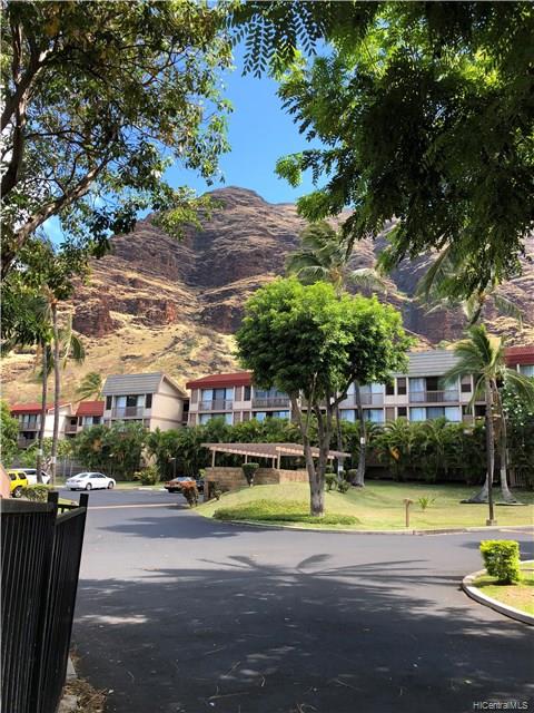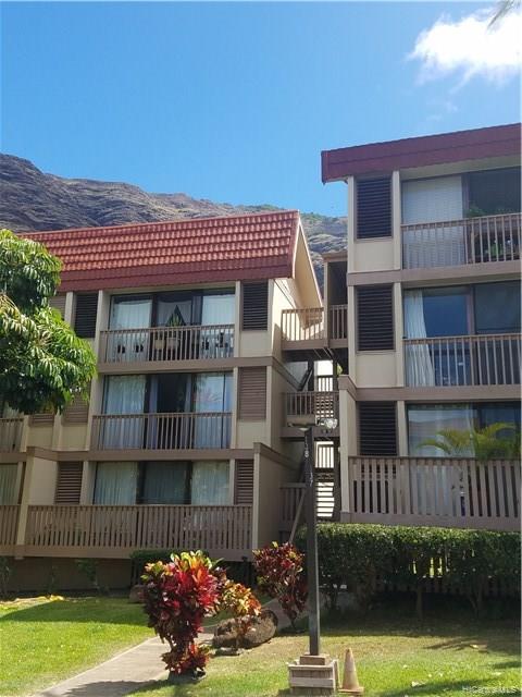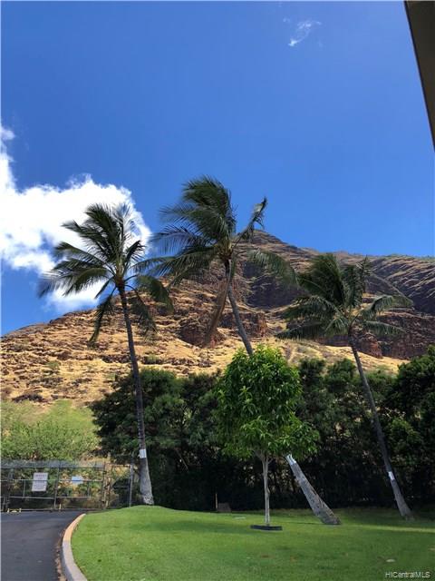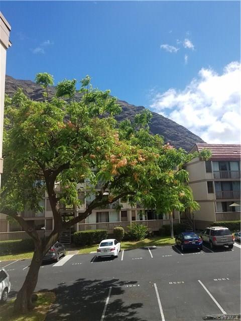 This two bedroom home is positioned within an immaculately kept and organized landscaped gated community of West Oahu. As you enter secure gate, you are greeted by guards from the start. The complex is backdropped by Hawaiian mountains, so cool breezes enter your unit. Open balcony, glamorous sunsets, mountain views, and a partial ocean view. Infamous Makaha white sandy beach for surfing, and golf, and grocery, bus stops are all nearby. Enjoy resort-like amenities such as two pools, hot tub, tennis, basketball courts, and more. This home is awaiting your personal touches. A splendid opportunity for your next Hawaiian paradise dream come true. Pets ok up to two dogs total and 75 pounds, per management office.