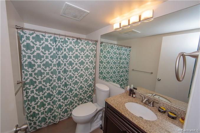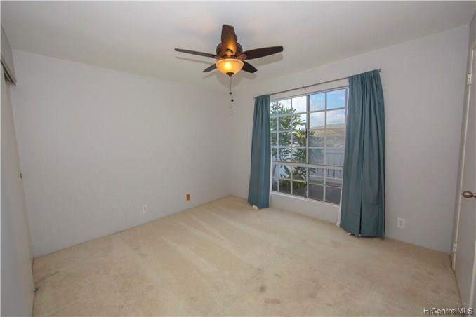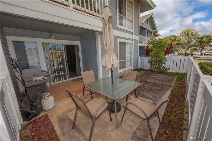Enjoy this cool two bedroom, two bath unit on the ground floor in well-managed Makakilo Cliffs. Ceramic tile in kitchen and baths and carpet in the rest of the rooms. Kitchen has upgraded quartz counter tops and newer cabinets. Bathrooms have granite topped vanities. Located at the top of the complex, you’ll enjoy the cool breezes from your enclosed yard. The barbecue area with seating is just a short walk from this unit as well.