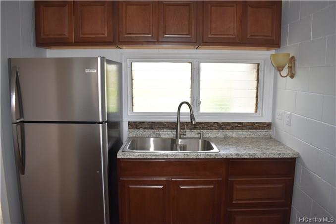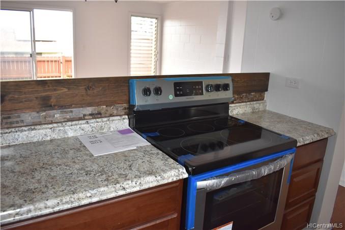 Highly desirable rarely available ready to move in Makakilo Gardens 1 corner unit. 2 bedrooms 1 bathroom with 1 assigned parking stall. Recently renovated with brand new stainless steel fridge and range. New Kitchen cabinets, fresh interior paint with plenty storage room. This unit will not last long. Schedule your showing today if you are a first time home buyer or you want to move to the growing second city of Kapolei. Close to shopping schools, restaurants and water park. Walk to the community pool and play ground or enjoy the Diamond Head and Ocean views from your own backyard.