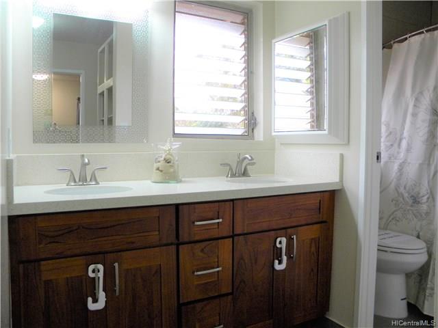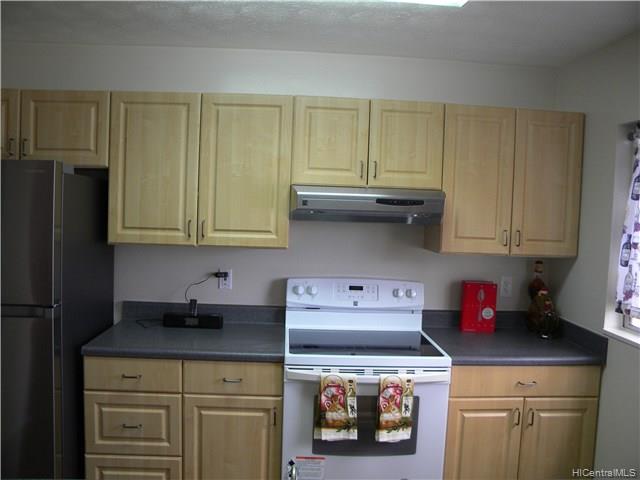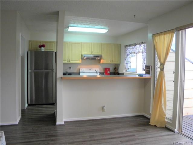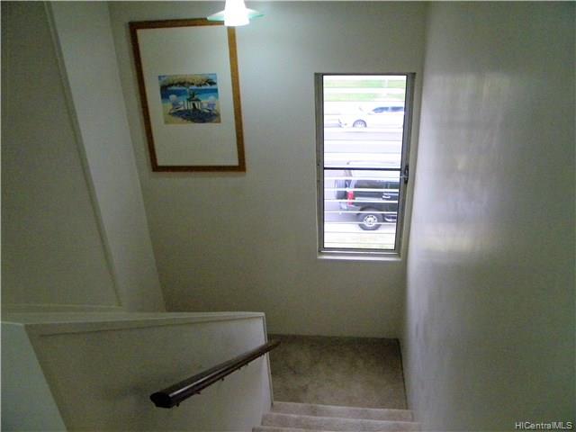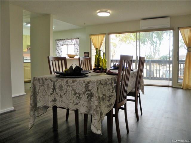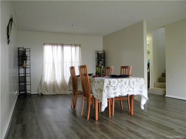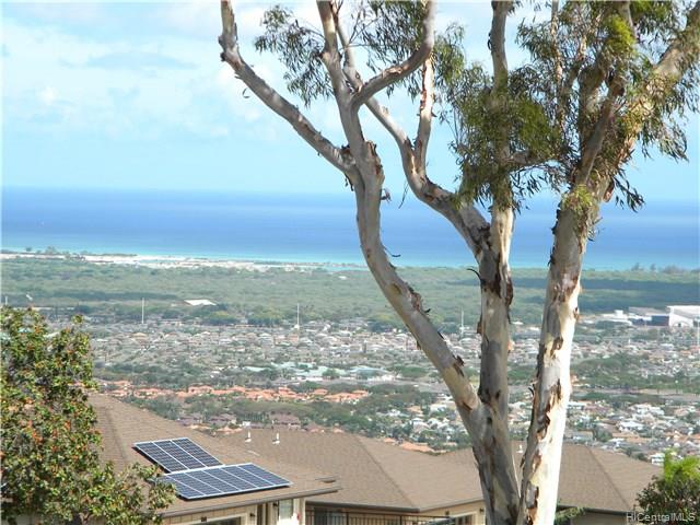 Rarely available 4 Bedroom 2 bath corner/end unit in Makakilo Hale 1, with ocean views throughout the home.New exterior paint throughout the complex in process with a beautiful new earthy colors. 2 assigned, open parking stalls and lots of street parking for extra vehicles or guests. Spacious living room, dining area and kitchen layout downstairs. Beautiful spacious green areas and walking paths throughout the complex. Enjoy the cool Makakilo breezes and wonderful views. Unit has been tastefully remodeled with split AC in the living room and master bedroom, so take a look and you’ll surely fall in love. First Open House Sunday 5/6/2018 2-5pm.