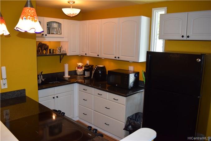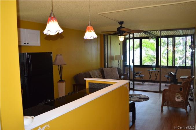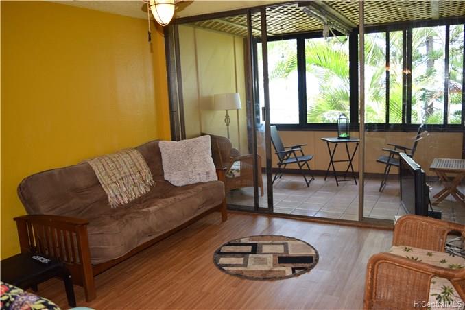 First Open Sun July 8th 2-5p. Tucked below the Crouching Lion, sits this ground floor, Makaua Village one bedroom, with direct views and sounds of the ocean across the street. Unit has been upgraded with newer kitchen, granite counter tops, glass top stove, inset sink, dishwasher and more. The large lanai is screened in and provides a great place to relax and enjoy the cool breezes. Bedroom is located in back, with new window a/c, mirrored closet doors. Bosch washer and drier, new bathroom vanity and glass shower doors. Amenities include, salt water pool, bar-b-que areas, party pavilion, car wash area and more. Complex is pet friendly and VA Approved. These usually sell fast, so don’t miss out.