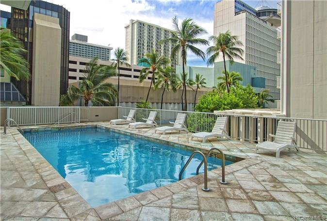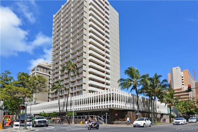 RARE – Building allows Short-Term & Long-Term Rentals!! FANTASTIC Location in the Center of Waikiki – Surrounded by Great Shopping, Entertainment, Restaurants & The Famous Waikiki Beach. This Studio has a Lanai, window AC unit, and (1) COVERED & Assigned, Secure Parking Stall. Fully Furnished Incl; Full Size Refrigerator w/Ice Maker; Tile Floors;Washlet/Bidet; etc. Amenities include Swimming Pool, Patio/Deck, Resident Manager, Restaurant. Electricity is included in the LOW Maintenance Fee! Laundry/Trash chutes on every floor. Sprinkler System in Every Unit.