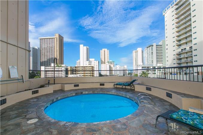 Elevated in every way, this luxury 2 bedroom / 1 bathroom condo is located in the pristine Monte Vista, with breathtaking 180-degree views of the Ala Wai canal, Ala Wai Golf Course, Koolau Mountains and partial Diamond Head views, that extends as far as the eye can see. This ready to move in unit features a spacious open layout of the living space area, a 33 sq. ft covered lanai, Jack and Jill bathroom, and washer/dryer. Great location as its minutes to Famous Waikiki Beach, fine dining restaurants, INTERNATIONAL MARKET PLACE and more. Relax alongside the swimming pool while having a BBQ with family and friends. This highly desirable unit won’t last, so don’t miss the opportunity as this is a must-see property!