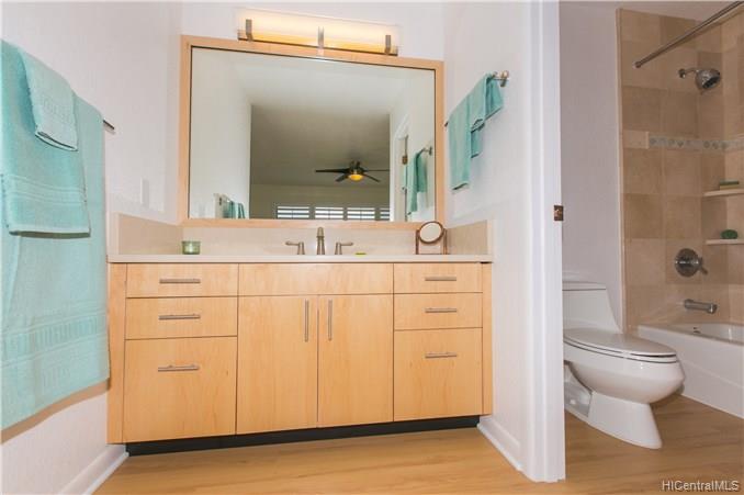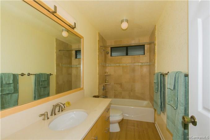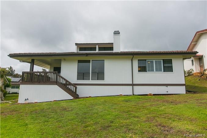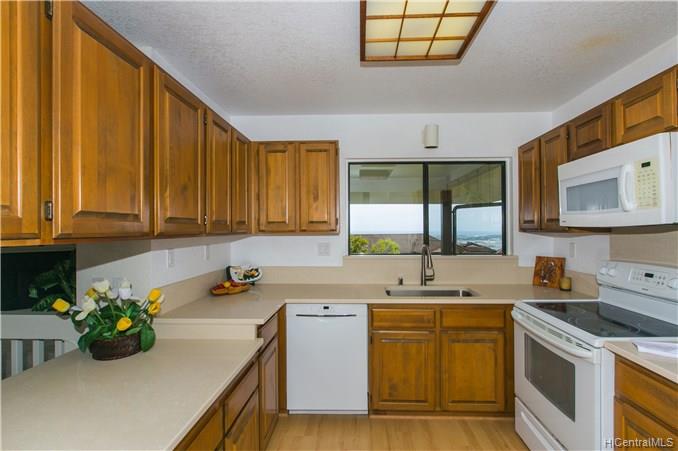 The ultimate in peace, privacy and tranquility at the top of Pearlridge where the forested trails begin! Rarely does a home become available in this private gated community of Nahalekeha, a cluster development of just 29 single family dwellings.. This single level 3 br/2 bath home has been renovated & upgraded. Vaulted ceilings help keep the home cool. A nice fireplace is present for those cool nights and seasons when it is too chilly. Kitchen has new quartz counters, custom back splashes and widow sill. Bathrooms have been renovated with new fixtures, cabinets, quartz counters, travertine marble tub surrounds & window sills. Plantation shutters complete the bedrooms. New carpets, paint, and vinyl plank flooring….98-1412 Onikiniki Place is move in ready!. OH Sun 6/10/18