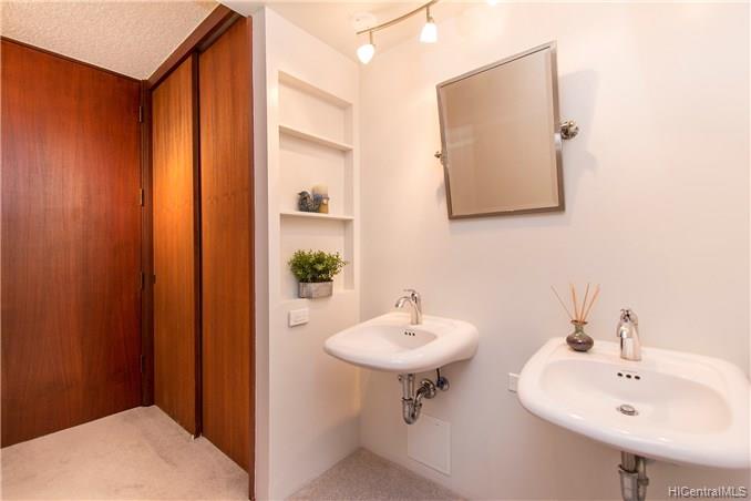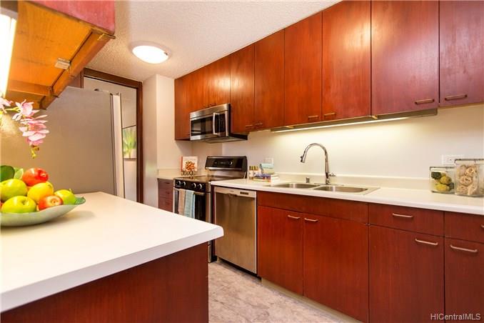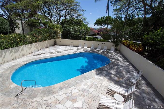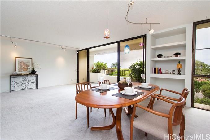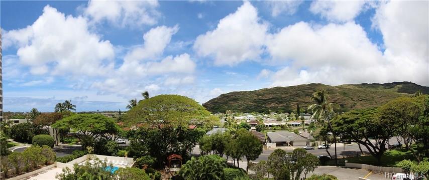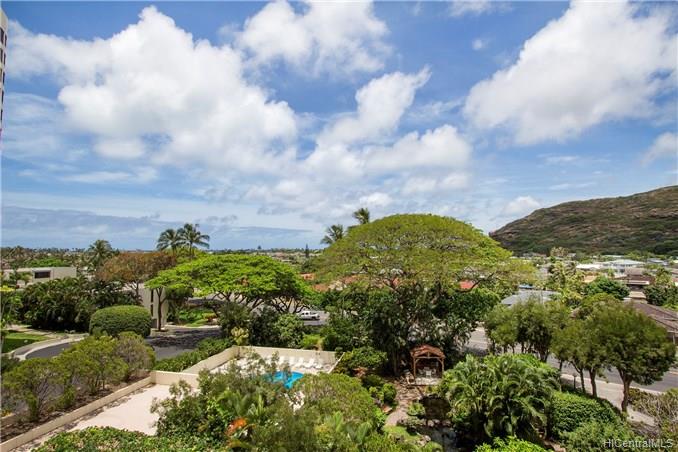 NEW LISTING in highly desired Naniwa Gardens! This spacious, 1238 sq ft 2 bed/2 bath/2 covered parking unit is TASTEFULLY UPGRADED and in MOVE-IN READY condition. Features include clean, renovated bathrooms, fresh paint, upgraded lighting fixtures, cool breezes & peaceful tree top, mountain, marina & ocean views. Naniwa Gardens is a well-run, pet-friendly building with private elevators serving just 2 units per floor for added security. Amenities include large individual storage unit, security, ample guest parking, fish pond, heated pool, BBQ area, & exercise room. Live the good life in Hawaii Kai in a highly rated International Baccalaureate school district and close to Costco, Maunalua Bay, Koko Marina, shopping, restaurants, hiking, watersports & more! HURRY, this one WON’T LAST LONG!