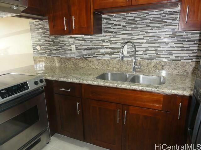 Beautiful split level townhouse. Laminate floors, granite countertops, window A/C, washer/dryer, with 1 assigned parking stall. Fenced back lanai.