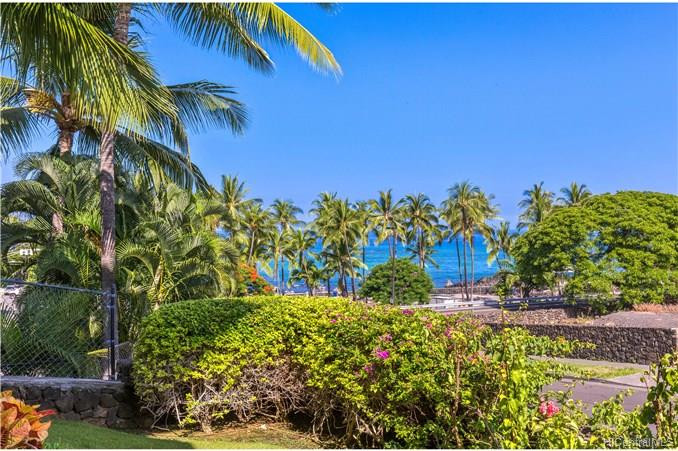 Enjoy sun, sand, snorkeling, surfing and sunsets…by walking just a few steps from your door. Kahaluu Beach is a favorite destination for both Kona residents and visitors. Unit 2-101 is located on the ground floor and offers easy access, but because of the slope of the property, it sits above the street level on the ocean side and offers privacy and ocean views from the generous lanai. Features include: – Central air conditioning (new compressor installed June 2017) – Quality cabinetry and granite countertops – New full size front-loading washer and dryer set, installed July 2017 – Tiled, walk-in showers in both bathrooms – Tile and carpet flooring throughout – Keyed storage closet located just outside the condo entrance – Counter area/peninsula for eating casual meals
