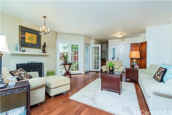 REPLACEMENT PROPERTY IDENTIFIED – IN ESCROW, MOTIVATED SELLER. Rarely available single family home within a gated community in beautiful Nuuanu. Spacious two story home, conveniently located near Downtown Honolulu with easy access to freeways and bus routes. Vaulted ceiling on the entire second floor, master suite and bedrooms, hardwood and tile flooring throughout, cozy fireplace, family or office room on first floor, and a roomy two car garage with direct entry to the kitchen. Lush tropical flora surround a private fenced-in Hawaiian garden and lanais. Maintenance covers hurricane, structural & fire residence insurance, water, sewer, HDTV group plan with Spectrum, Sentracon termite & pest control system and grounds gardening service (front/common areas).