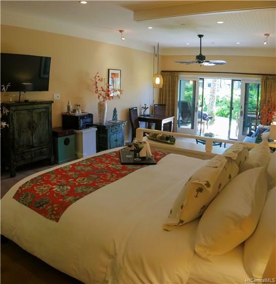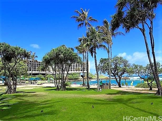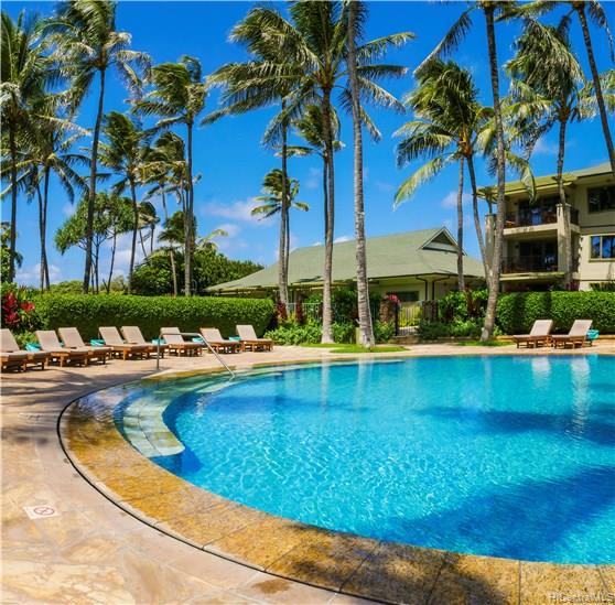 RARELY AVAILABLE;EXCLUSIVE LOCATION;AMENITIES GALORE at Ocean Villas,Turtle Bay. Rent thru Turtle Bay Resort to ensure your Guests will have ALL ACCESS to Turtle Bay Resort OR Self-Manage. Either way,Owners can reserve dates for themselves,family,& friends! This nicely remodeled,highly desirable Ground Floor unit is just steps to great snorkeling at Kuilima Cove & the Ocean Villa swimming pool/spa. This unit’s location is in the only 1-story wing(Building #E) in Ocean Villas which means no worries of any guests above and of course, no stairs! The unit boasts a nice flow from entry to lanai to a bright green lawn, then a tough choice of Beach or Pool…I say BOTH!! Don’t forget about Surf,SUP,Golf,Tennis,Spa,Bike Trails,Horses,Helicopter,Segway,Mopeds,& 7 bars all on Turtle Bay property!