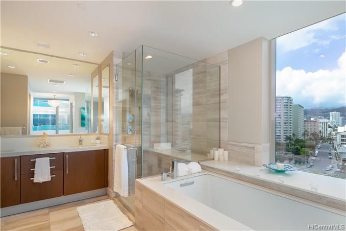 RELAX IN THE HEART OF HONOLULU, atop world-class Ala Moana, steps to shopping, dining, entertainment, Ward Village, Blaisdell Center & Freeways! Beautifully renovated hardwood floors and fresh Feng Shui decor enhance this rare, well-price corner unit in the Diamond Head Tower! Harbor/Yacht & Ocean views, along with city lights & green mountain views surround this lovely cosmopolitan residence. LIVE like a celebrity with 24/7 security, concierge front desk, 5-star plus resort amenities, spacious, gorgeous interior design & grounds! GREAT INVESTMENT property: ONE Ala Moana is a RARE Ala Moana/Kakaako building that allows monthly rentals!! Parking, Storage+Pet-Friendly too! Hurry, this one won’t last long!