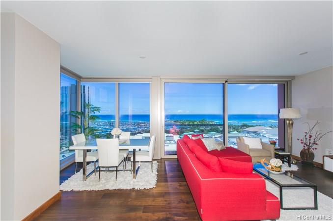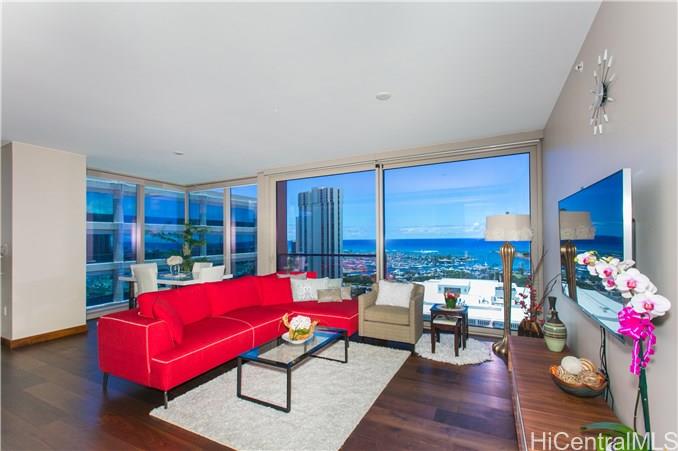 Living at this Luxurious fully furnished 2 Bedrooms, 2 full bathrooms residence which boasts sweeping ocean and sunset views through magnificent floor to ceiling windows! Very convenient location adjacent to Ala Moana Shopping Center & Saks Fifth Avenue. Also two short blocks away from the beach park, 24/7 stores, and Waikiki. Multiple Resort style amenities: Tot Lot, Quick Grills, Lounge Cabanas, Whirlpool Spa, Keiki Pool, Infinity Edge Pool, Dog Parks, Putting Green, Jogging Path, Dining & Chef’s Kitchen, Wine Tasting Room, Movie Theater, Library/Den, Simulation, Yoga Studio, Shopping/Treatment Salon, Kids Multimedia Room & Guest Suites.