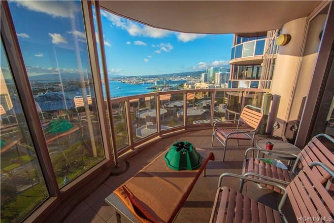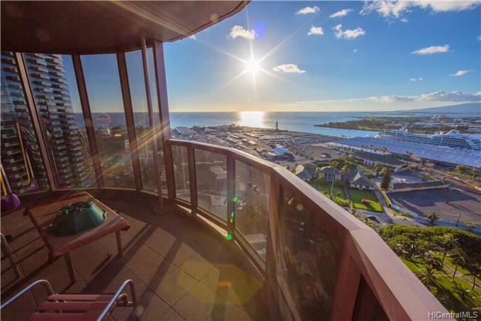Rarely available, 2 PARKING, 1 Bedroom, 1 Bath High floor, Makai tower!!! Enjoy this Executive Luxury Lifestyle High Rise condo conveniently located next to high end restaurants and high energy night life entertainment. Wake up to beautiful ocean and harbor views, and start the evening off with breath taking sunsets. Private Cabana style BBQ areas is just an added bonus to the upscale amenities which include a heated pool, whirlpool, sauna and exercise room. Electricity is sub metered per unit and included in the monthly fees. Other monthly fee include $157.15 Assessments.