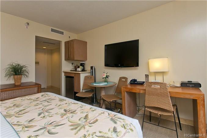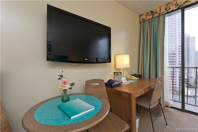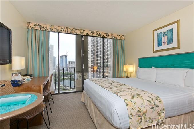 Live, play or invest in this boutique condotel, Palms at Waikiki, located within a few minutes walk to the famous Waikiki beach and Hilton Hawaiian Village. Unit is located on the cool quiet side of the building with city and mountain views. IHOP restaurant is on site, bus line is in front of the building, and walking distance to Ala Moana Shopping center and other restaurants.