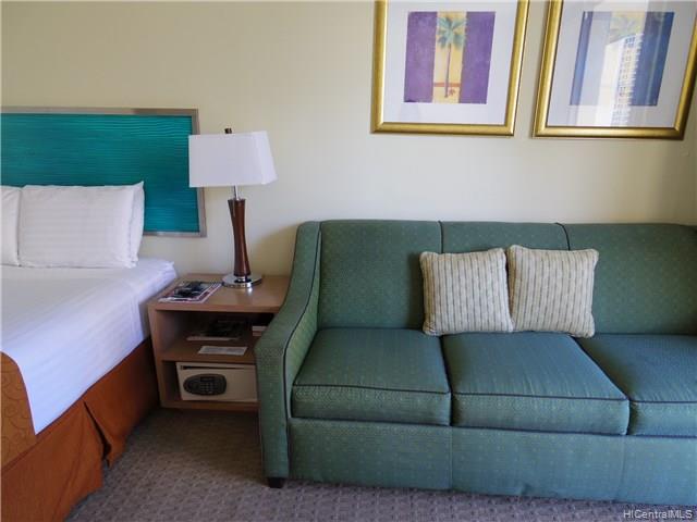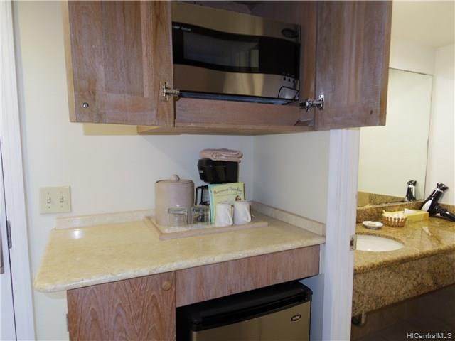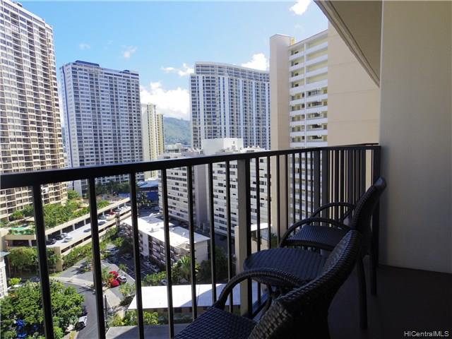 An airy & breezy high floor with enjoyable mountain view from spacious lanai. Useful kitchenette is in the unit. The unit is currently in the Aqua Aston hotel rental pool which show high occupancy rate. Very convenient location, close to Ala Moana Shopping Center, beach, dining, shopping and bus stop. Sold “As Is”.
