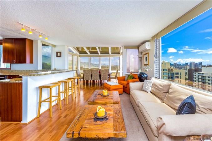 壮大な 1 つのようなペントハウス デラックス ・ プライバシー。この排他的なプライベート プロパティは、ペントハウス階唯一のユニットです。プナホウ ・ スクールから、お客様の変化するニーズに便利な半ブロックに位置します。広大な 1,899 ㎡3 ベッドルーム、2 完全な浴室の平面図には、725 平方フィートが含まれています。部分的に屋根付きのラナイ スペースのあなたとあなたのゲストのための屋内/屋外のエンターテイメントに最適です。360 度 ceity、海、そしてダイヤモンド ヘッド ビュー、魅了する日の出、夕焼け、星空の下でさわやかな夜を見る。エアコン、広々 としたキッチン花崗岩とステンレス電化製品・詳細を分割!