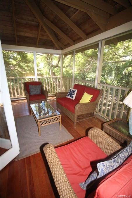 Looking for a private “tree house” feeling home just steps away from the beach?…then this desirable corner location townhome is your dream place! With over 500 sq ft of wraparound, screened lanai surrounded by lush gardens and trees, you will feel like you have the best of all worlds. Open the french doors and enjoy the natural breezes and open concept living. Updated and newly furnished and decorated in stylish decor, the ambience and spacious living area will delight your senses and is perfect for entertaining or just relaxing. The spacious master bedroom boasts soaring vaulted ceilings and french doors that open to the private lanai addition (most units don’t have). This rarely-available floorplan offers great value and is being sold turnkey so don’t miss out!