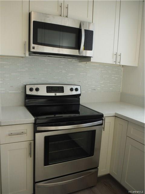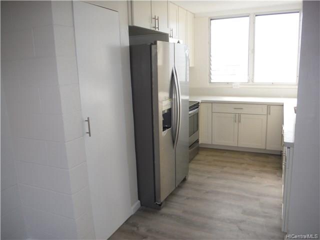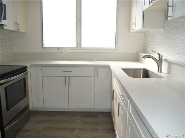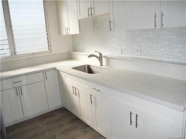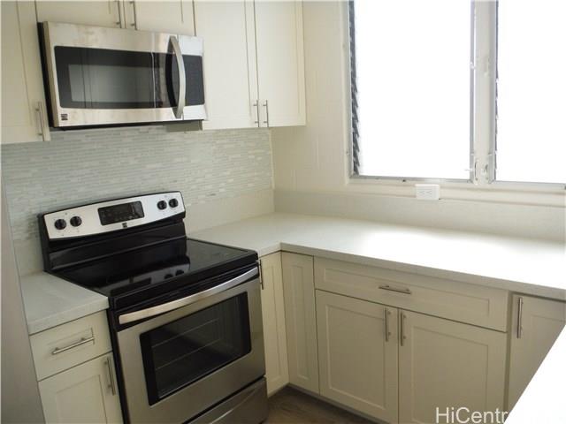 MUST SEE! Completely remodeled from top to bottom! Great for investor or first time home buyer! Beautifully remodeled with new interior paint, front security screen door, new luxury vinyl plank flooring, new kitchen cabinets and quartzite countertops, new stainless steel appliances, new lighting fixures, plumbing fixtures, new bathrooms with new tub, wall tile, vanity, bathroom cabinets, mirrored closet doors and much more! Secured building and well managed. Peek a boo harbor view from unit. Unbeatable location – directly across from Pearlridge Shopping Center for shopping, movies, restaurants and banks and close to the H-1 freeway, new rail line and bus stops. Second floor allows for easy stairway or elevator access.