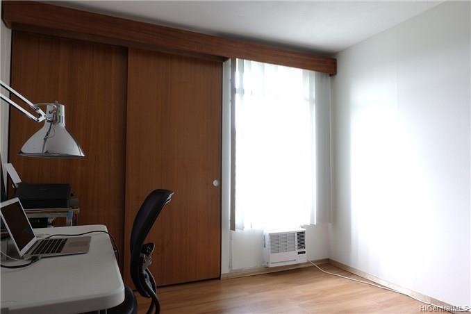 Upgraded, spacious 2 bedroom unit in King Tower. Kitchen and bathroom nicely upgraded with all new stainless steel appliances and new fixtures and lighting. Lanai has been enclosed to provide increased interior space making this the largest unit available at Queen Emma Gardens. Grounds are well maintained and include huge lawn area and lush gardens with Japanese Tea Houses, Koi Pond and pool area to enjoy with your guests. Other monthly fees are for two window AC units and can be eliminated by removing these a/c units.
