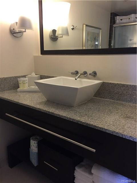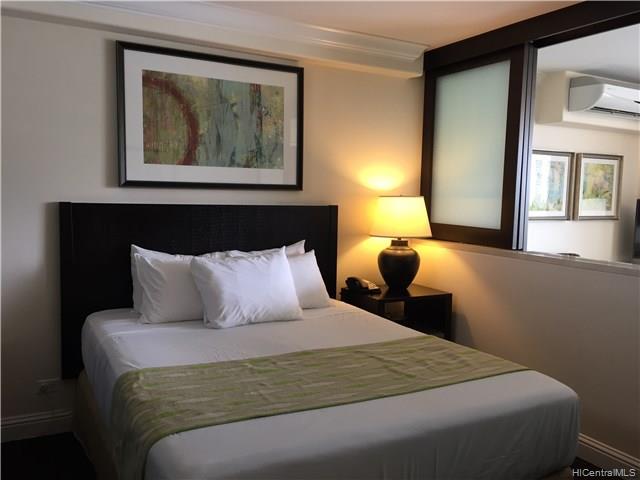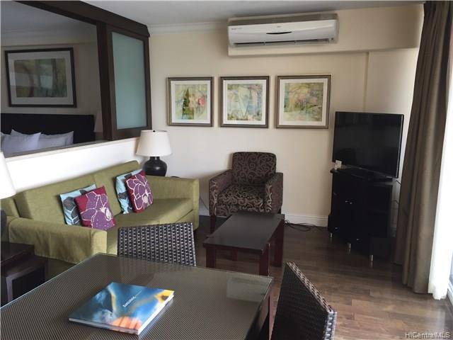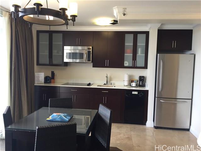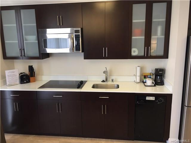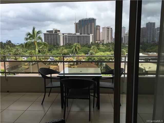 Priced to sell! Fully furnished, desirable high-floor unit in boutique condominium with easy access in/out of Waikiki. Conveniently located within walking distance of the famous Waikiki Beach, Waikiki Luxury Row (St. Laurent, Chanel, Gucci, Moncler, Coach), spectacular Beach Walk, and fabulous restaurants (Ginza Bairin, Roy’s Waikiki, Arancino, Yardhouse). International Market Place is just a few blocks away. Use as a second home or utilize the hotel rental pool for additional income. Excellent on-site management. Whole building was refurbished in 2006. Unit has a designer kitchenette and large lanai where you can enjoy the partial ocean view, and colorful sunsets. Don’t miss this one!
