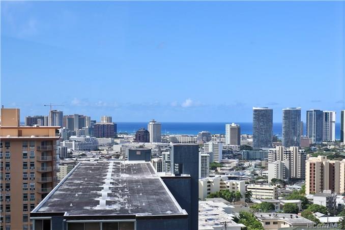 Unique condo home is perched on a hill that has commanding 180 degree views of City lights, ocean/coastline, Diamond Head and verdant green views of Maikiki Hts. and Tantlaus. Very privately located next to lush mauka slope of Punchbowl. Huge living room and master bedroom w/sitting area featuring wrap-around windows bringing in the outdoors. Includes 2 full size parking stalls, storage, and salt-water pool