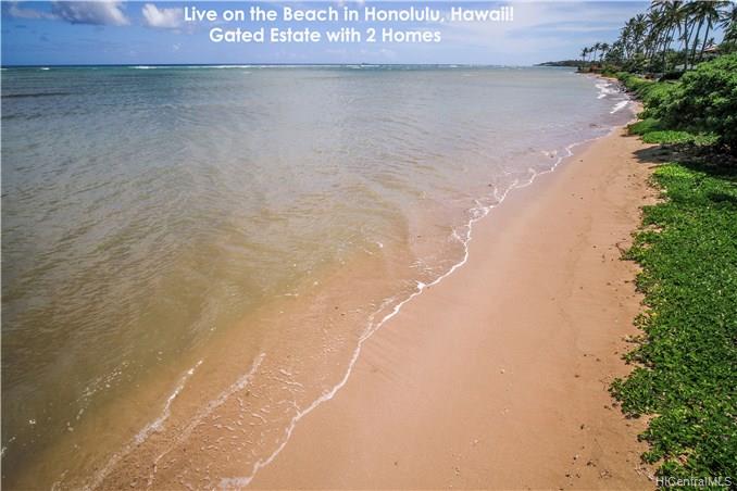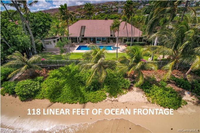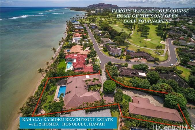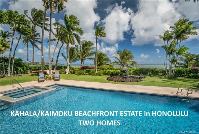 BEACHFRONT ESTATE WITH 2 HOMES SPANS 118 LINEAR FEET OF OCEAN FRONTAGE AND OFFERS WIDE SWEEPING OCEAN VIEWS TO KOKO HEAD. TROPHY PROPERTY of nearly 1 acre of land consisting of 2 parcels. Very private and serene setting located on prestigious Kaimoku Place, a one block street of only 10 oceanfront homes near Waialae Golf Course. Gated entrance into the Estate leads to an enclave with an Oceanfront single level home of 5 bedrooms + pool, a caretaker’s 1 BR cottage, and 4 BR two-story Guest House (built in 2000). Refresh this luxury beachfront Estate and enjoy Honolulu’s tropical lifestyle in this HIGHLY DESIRED & RARELY AVAILABLE LOCATION. Near Kahala Mall shops, restaurants & Whole Foods Market.