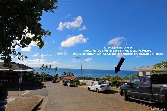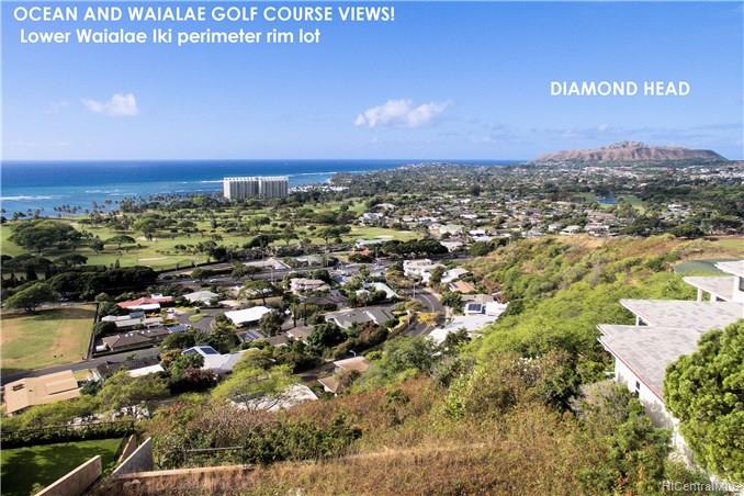 NOW IS THE TIME TO BUILD A NEW HOME WITH PANORAMIC OCEAN VIEWS on a 15,984 sq ft lot in EAST HONOLULU overlooking Kahala and Waialae Golf Course. Currently the only vacant land actively available on the market on Waialae Iki Ridge! Location, Location, Location is most important. Enter WAIALAE IKI from Laukahi Street and take the first left onto Kamole Street; continue towards the Diamond Head end to see the ‘For Sale’ sign. The downslope lot provides wide view planes for a two-story home and pool if desired. Lots of blue sky/water/clean air and minutes to Kahala Mall for shopping at Whole Foods Market. Building plans are available for review.