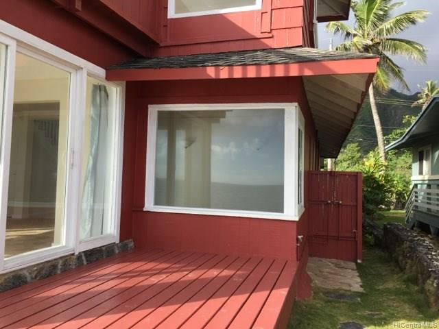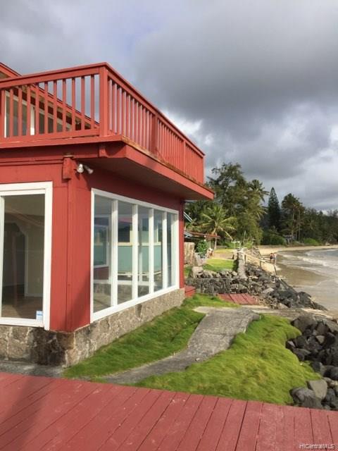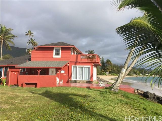Country living at its finest. Just a few steps and your toes will be in the sand, in this two story home on the beach. Large open lot of 8, 924 square feet provides plenty of yard for family activities or extra parking. Large picture windows and sliding doors allow for front row seats of the oceans beautiful views. Two bedrooms two and a half bathrooms, lots of possibilities. Five minuets to Laie town, Polynesian Cultural Center and Brigham Young University. Elementary Schools, Kahuku High and Intermediate School, The Bus line and much more! This home will have a new roof as part of the sale.