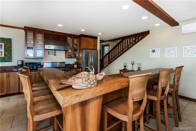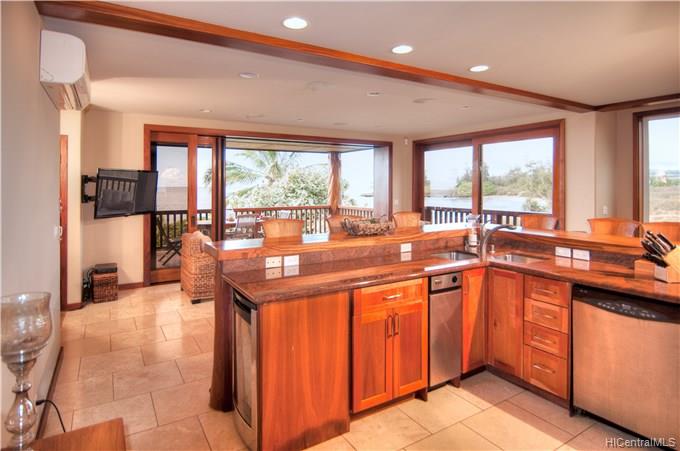 Sand in your toes, toys at the ready in your massive garage with doors on both ends, panoramic ocean and mountain views… this is how to enjoy beachfront living! While fun to live in, discerning buyers will also appreciate the thoughtful quality present throughout this 11 year new home. Constructed with steel saddles, screws & nails, insulated walls. Fine finishes (ex: Viking gas range, beverage cooler, pasta pot filler) are found in a killer kitchen. Check out the variety of woods, many milled on site during construction: ohia, teak, bamboo, mahogany, cherry and ironwoods. A resort-like setting is complemented with granite, marble, walk in closets, generous sized bedrooms, a butler’s pantry, outdoor shower and more!
