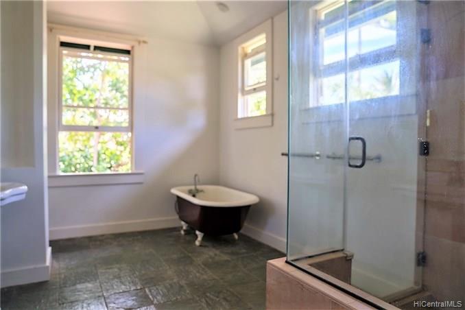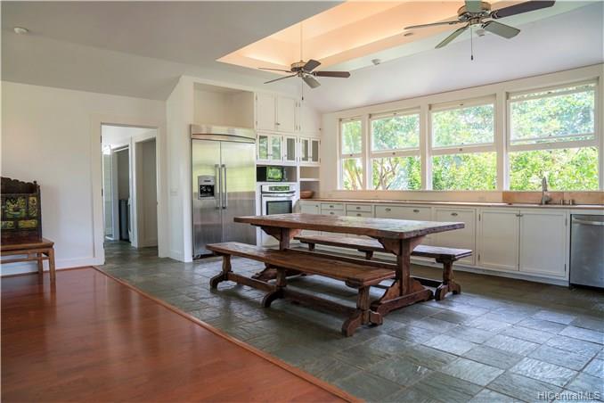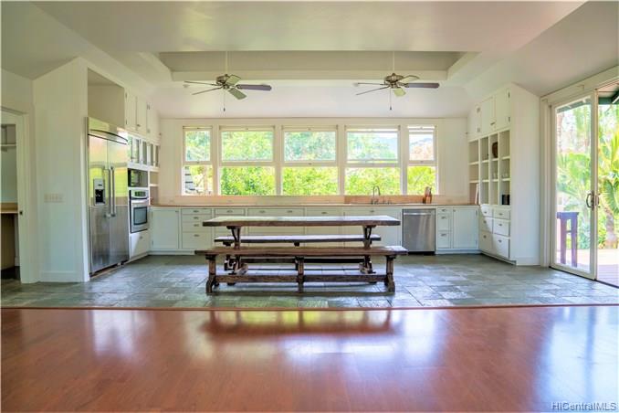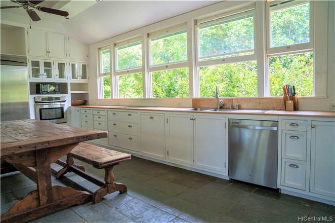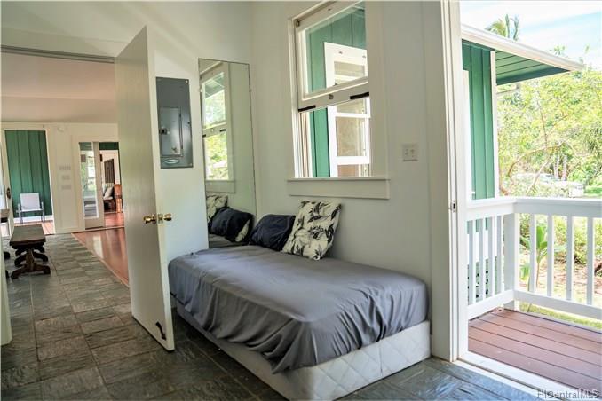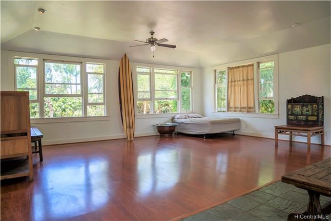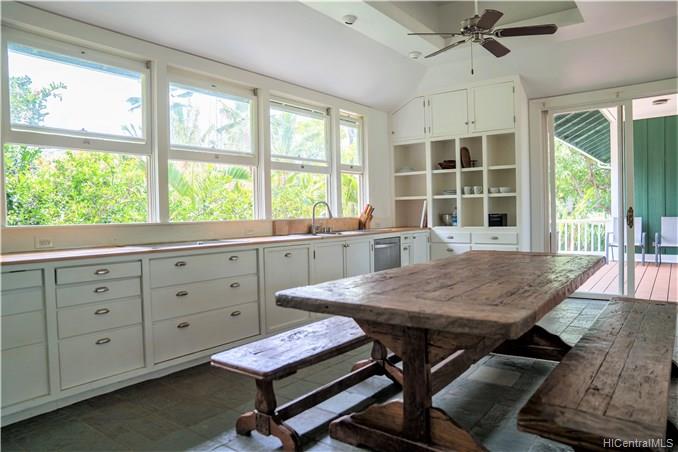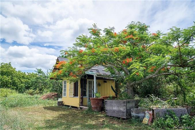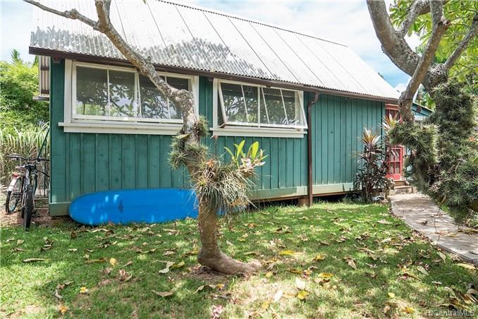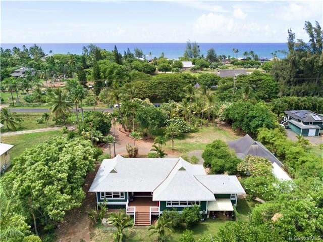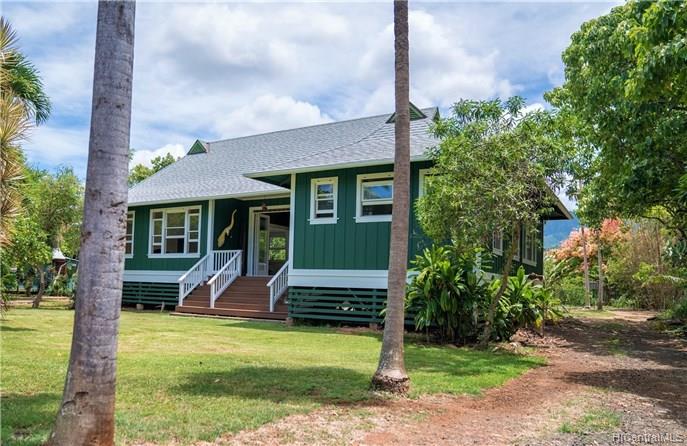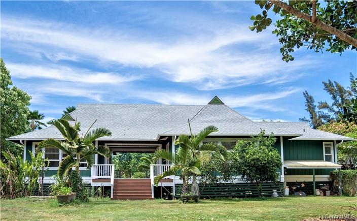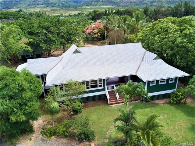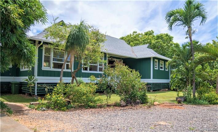 Classic Hawaiian Plantation Style Board and Batton home from a bygone era. Sitting on 2 lush acres of Mokuleia land 1 block from miles of white sand beach. Kikou is a side street so there is very low car traffic or noise. Open space for children to run around in their own sanctuary. Lots of area to plant your crops and create your own farm to table lifestyle. Just 5 minutes from Haleiwa and 45 minutes from Honolulu airport. There are 2 small cottages in the yard and an office/studio in the garage for visiting out of town guests or AIRBNB rental income. Room for barns, green houses, horses, sheep, goats, chickens and more. No hassles with North Shore Traffic, Drive right from town on H-1 to Kaukonahua Road straight to Mokuleia. AG water and city & county water available.