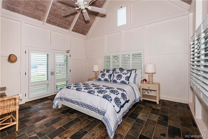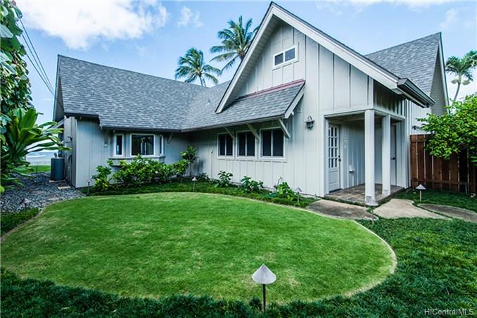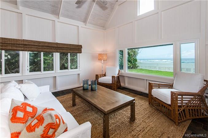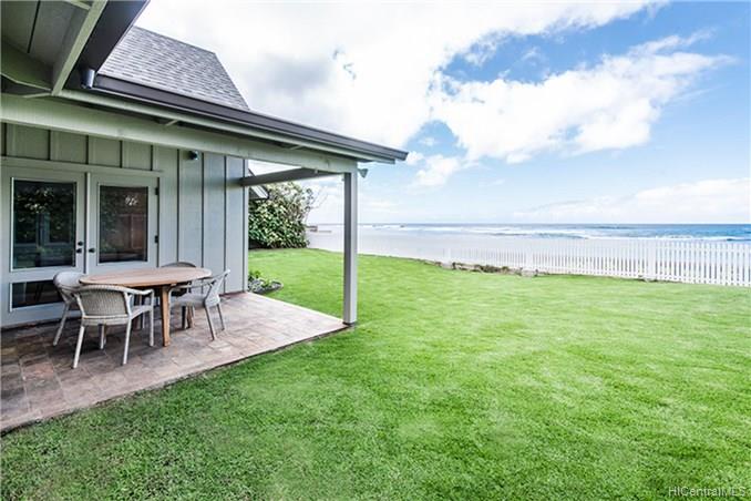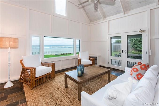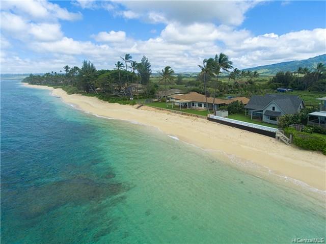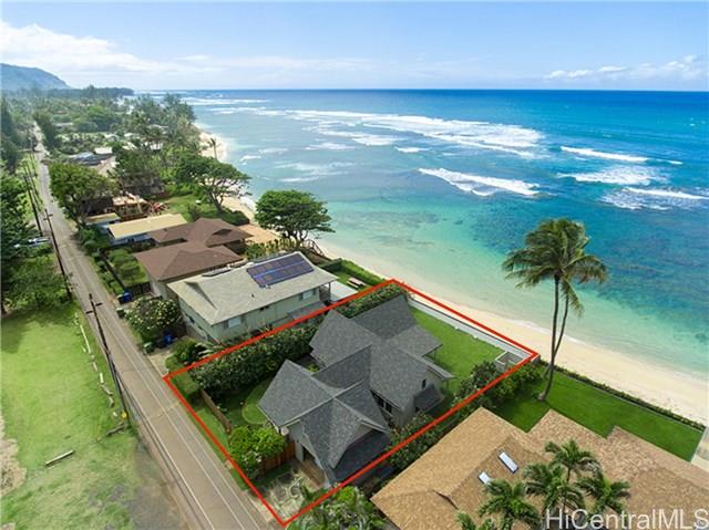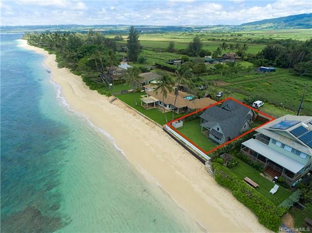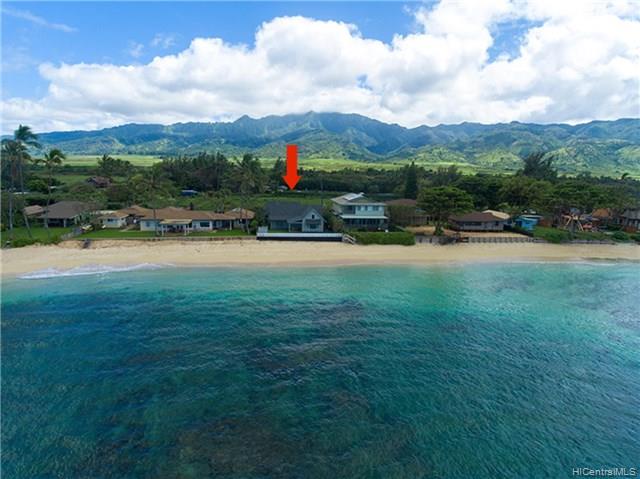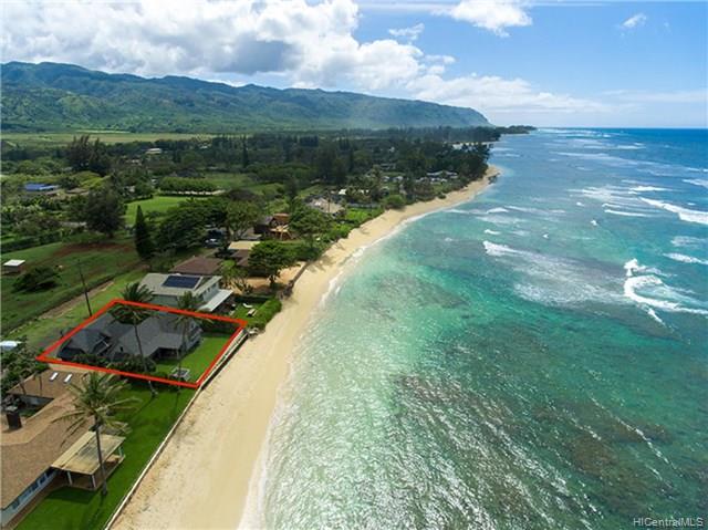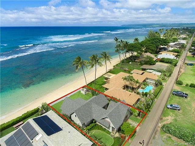 BUILT IN 1988 & REDESIGNED in 1996, this EXCEPTIONAL BEACHFRONT home is move in condition + beautifully furnished. Fully landscaped for privacy, w/lovely manicured lawns for gatherings of friends & family. Island style architectural features include batten board exterior finishes, an A-frame roof line with interior open beam ceilings, stone & wood floors, plantation shutters, AC, built-ins, smartly laid out & fully equipped kitchen & perfectly placed windows to capture gorgeous views of Mt. Kaala & colorful sunsets! This charming beachfront home is located in the peaceful community of Waialua on the North side of the island, away from traffic congestion & overcrowded beaches. Stroll the pristine sandy beach at sunset, or take a short drive to historic Haleiwa town for dinner or shopping.