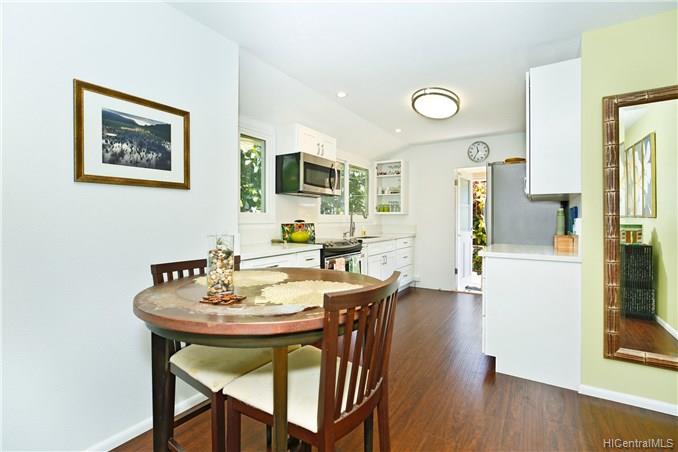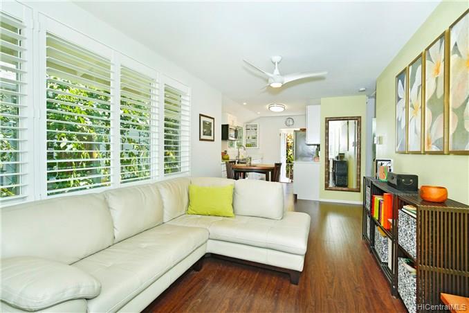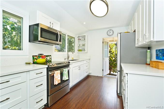 Special Rare Opportunity! Absolutely charming 2/1 home, completely renovated kitchen and bathroom with lovely quality improvements- approx $120k. New interior & exterior paint, shutters, closet systems, and tandem stalls. Super convenient location, close to shopping, schools, downtown Honolulu, etc. No maintenance fee! Shows like brand new!