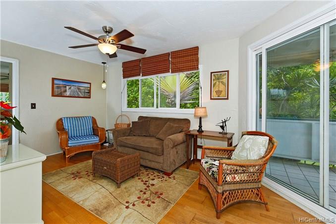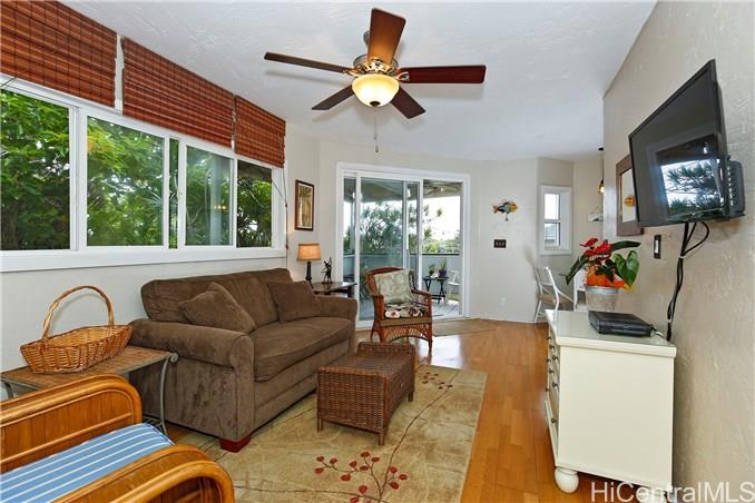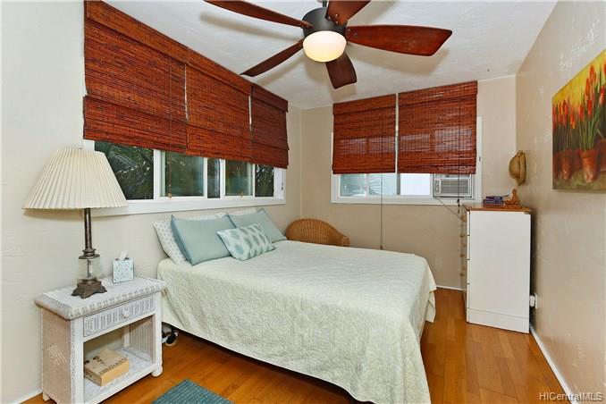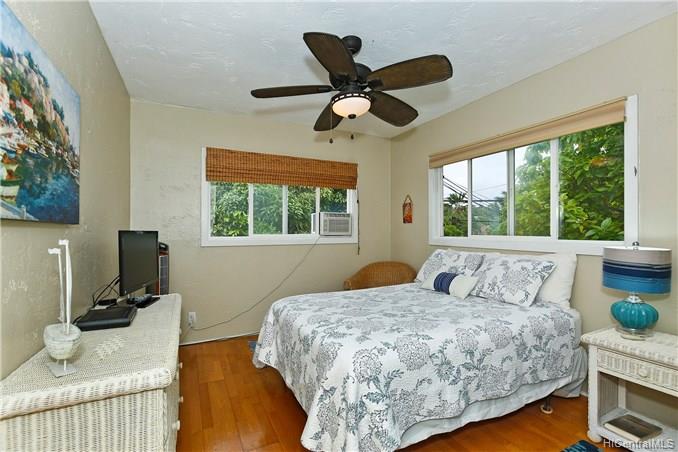This quaint 2 bedroom 1 bath home is as alluring as it is affordable. Located in the highly sought after Aikahi neighborhood, it will not stay on the market long. This modern home has an upgraded kitchen with new appliances and a new tile floor, a renovated bathroom with a large tiled shower. The hardwood floors and freshly painted interior make for a very comfortable modern home complete with new remote controlled ceiling fans in each room and both bedrooms have new window AC units. This home is a 10 minute walk to the beach with easy access to bus stops, grocery store, restaurants and Marine Corps Base Hawaii. Nestled in the tree tops, this 2nd story home is very cozy and private with trade wind breezes throughout the year. From the tree top lanai there are breathtaking views.
