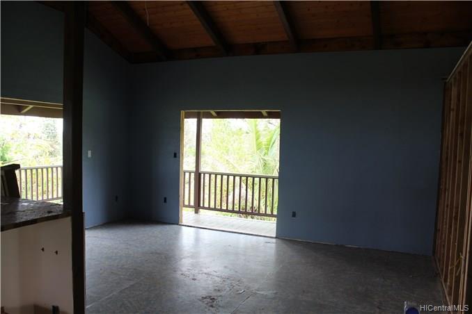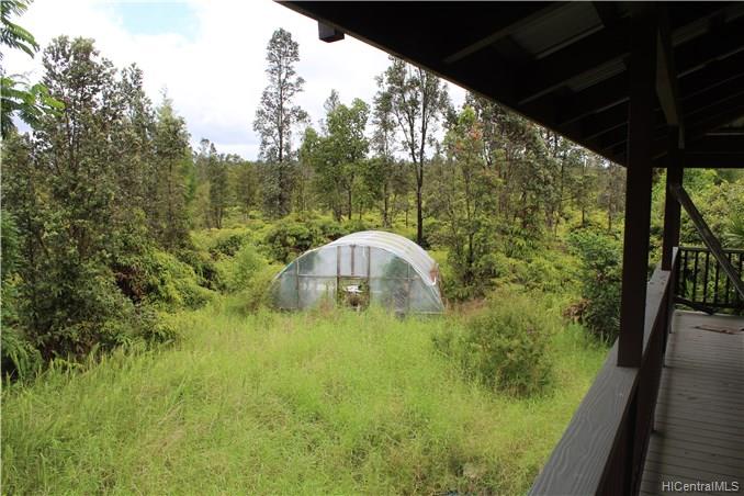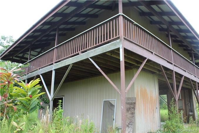 This is an unfinished 2 bedroom, 2 baths home with a beautiful wrap around deck that give you a great ocean view. The downstairs has an unfinished bathroom and an area to build a small bedroom. Upstairs has 2 bedrooms with glass sliding doors, 1 bath, with the 360 wrap around deck. Vaulted ceilings with an open skylight dome to bring in natural light. Home is set back on the 3 Acres of land for privacy surrounded by beautiful Hawaiian Acres forest. Home is waiting for the new owners to come in and complete with their own touches.