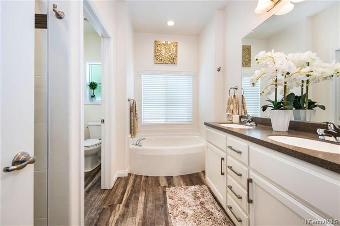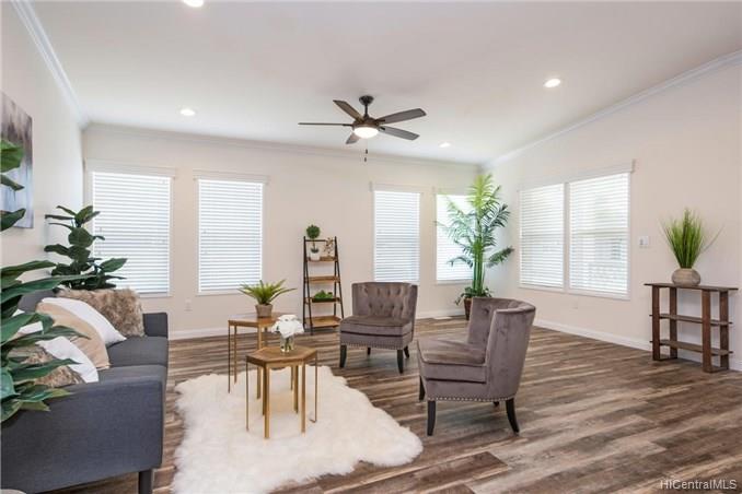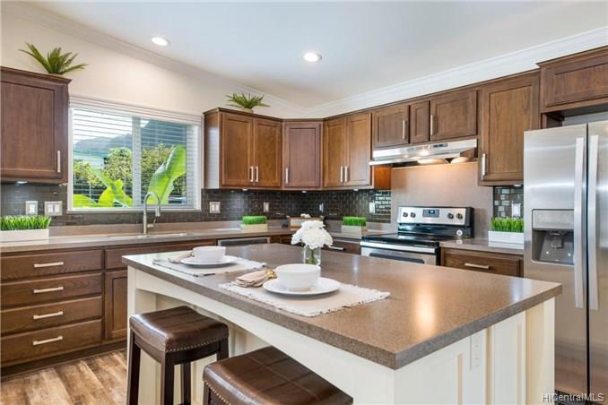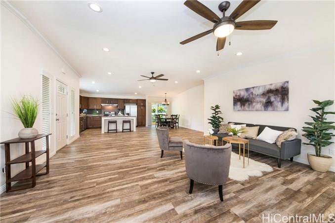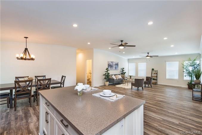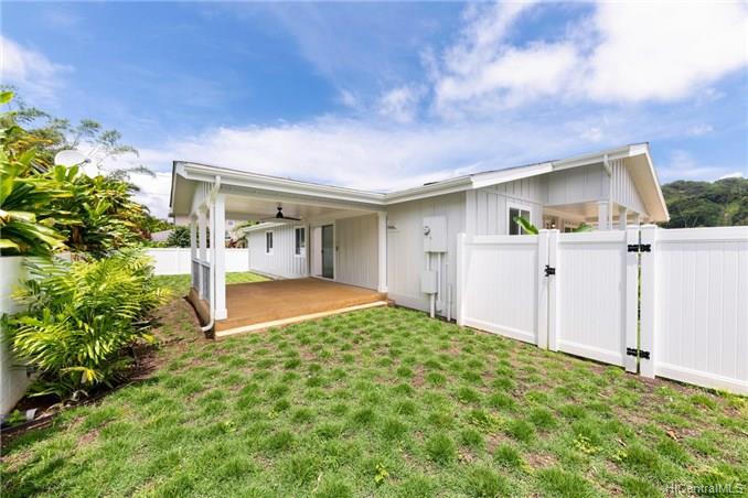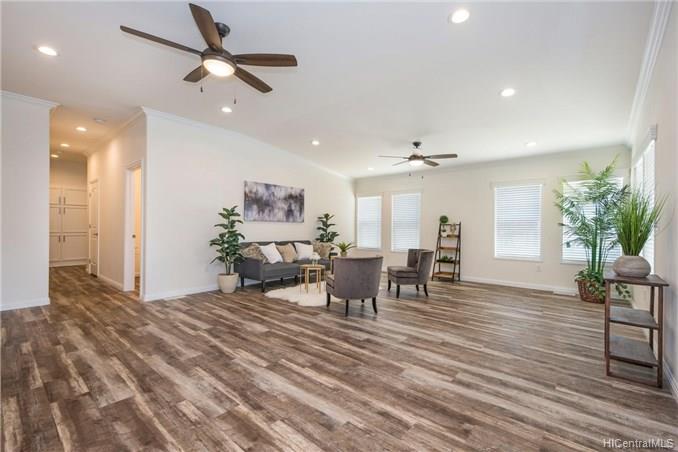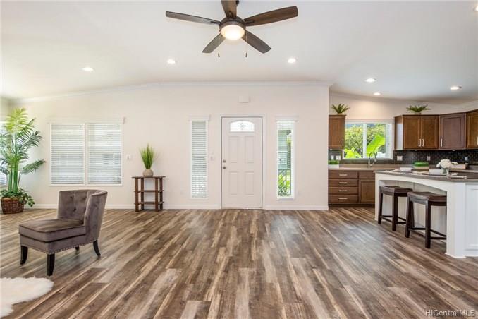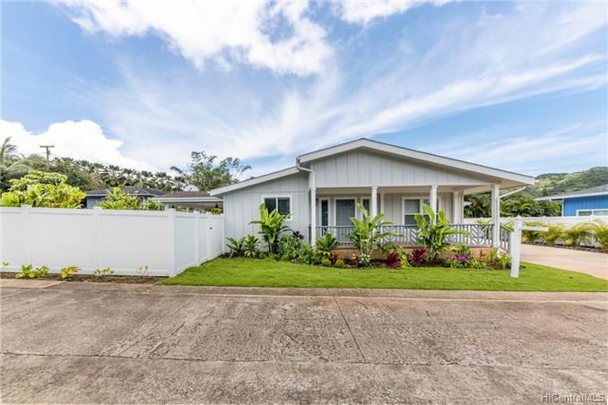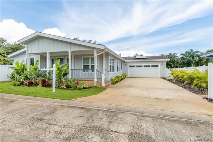This BRAND NEW 3 bedroom 2.5 bath single story, manufactured home, is located on a private road with expansive views of the Ko’olau Mountain Range. This home has an open floor plan with a modern kitchen that features a large island and custom finishes, a great room with lots of natural light, and a large covered lanai perfect for indoor-outdoor living and entertaining. The executive master suite offers a luxurious bathroom, an oversized walk in closet, and a spacious sitting area. The backyard is fenced in and beautifully landscaped. This home has central-air conditioning, a laundry room, and a finished 2 car garage with room for storage. Enjoy quiet country living just 13 miles from downtown Honolulu. First Public Open House Thursday, 10/24 from 10:30am- 12:30pm.