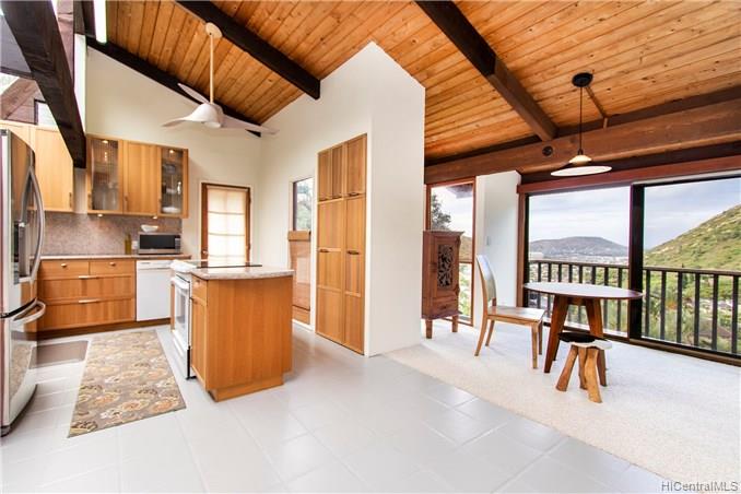 New listing!! Enjoy cool breezes and breathtaking dramatic mountain and ocean views from this tastefully designed 3 bedroom/3 bath split level home in upper Hahaione Valley. Situated on an over 7,000 sq. foot corner lot, this home features vaulted ceilings, expansive windows to take in the views, in-ground pool and a separate guest cottage. Conveniently located near schools, shopping, and restaurants. Don’t miss this fantastic opportunity!