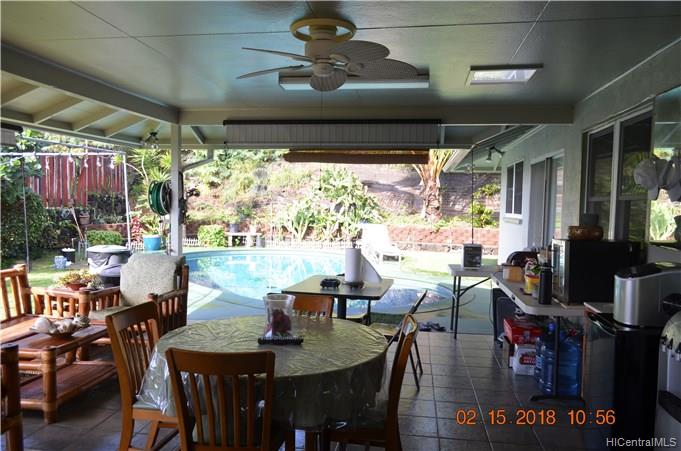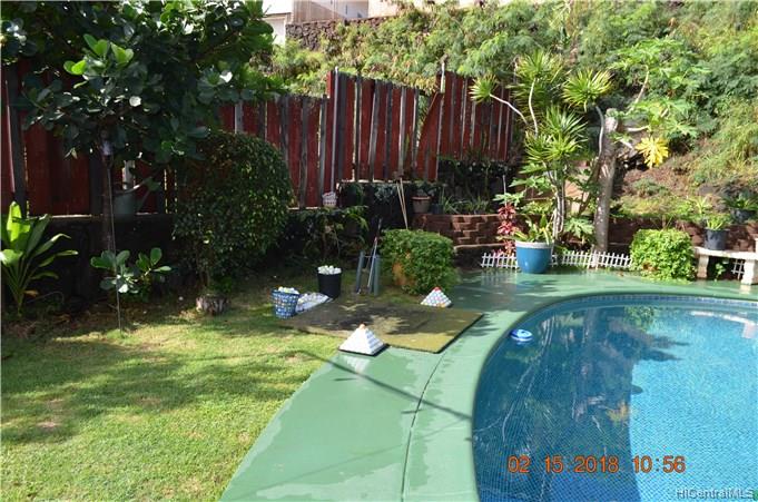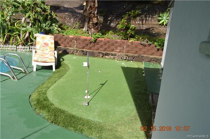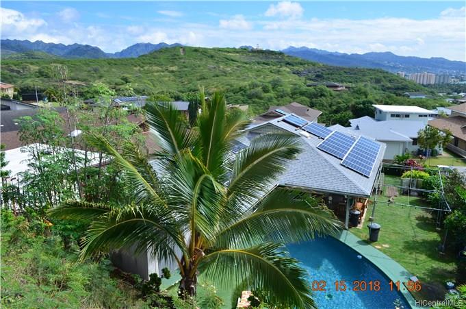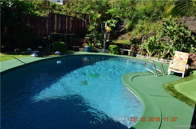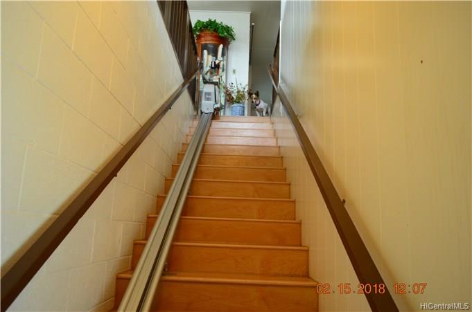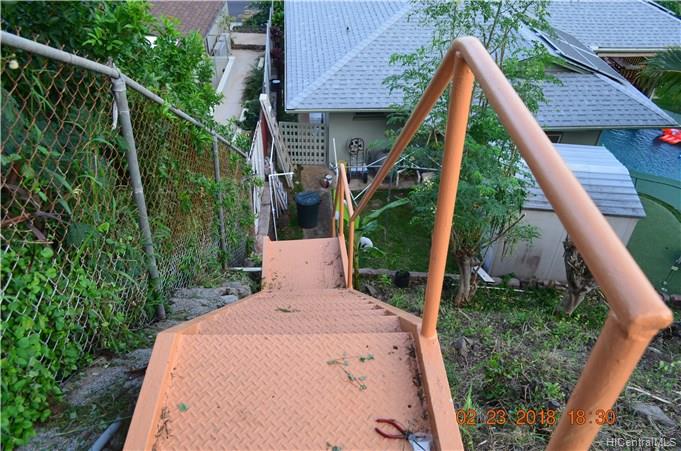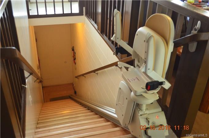 Renovated and updated home in Salt Lake area waiting for new owners. Gated and fully fenced yard, owner owned 24-panel photo-voltaic system connected to the HECO grid, equipped with remote or manually operated stair-lift, dumb waiter to transport goods from garage area to main house or vice versa, a swimming pool, putting green and chipping area, lots of fruit trees.